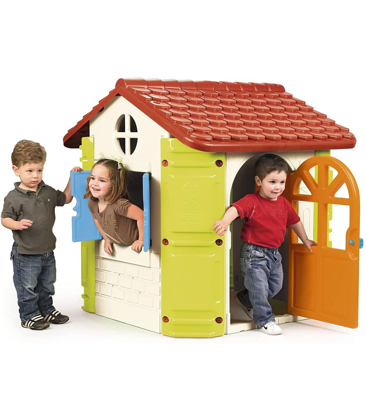 Feber House Casita infantil de Feber con ventanas que abren y cierran Estantería con puerta y llave Incluye zona de barbacoa Fácil montaje, accesorios no incluidos Para niños y niñas a partir de 2 años
