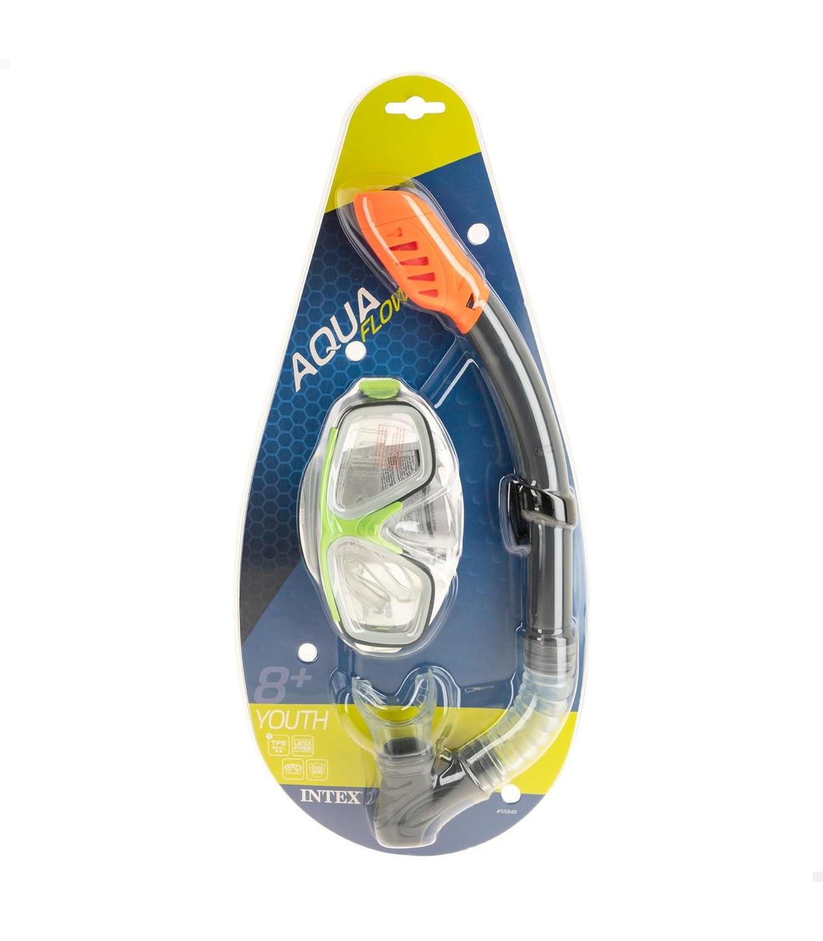 Máscara y tubo de buceo Intex con lentes de policarbonato de color rojo y negro,medidas máscara: 17x21x11,5 cm y tubo: diámetro 3,5 cm y altura 41 cm