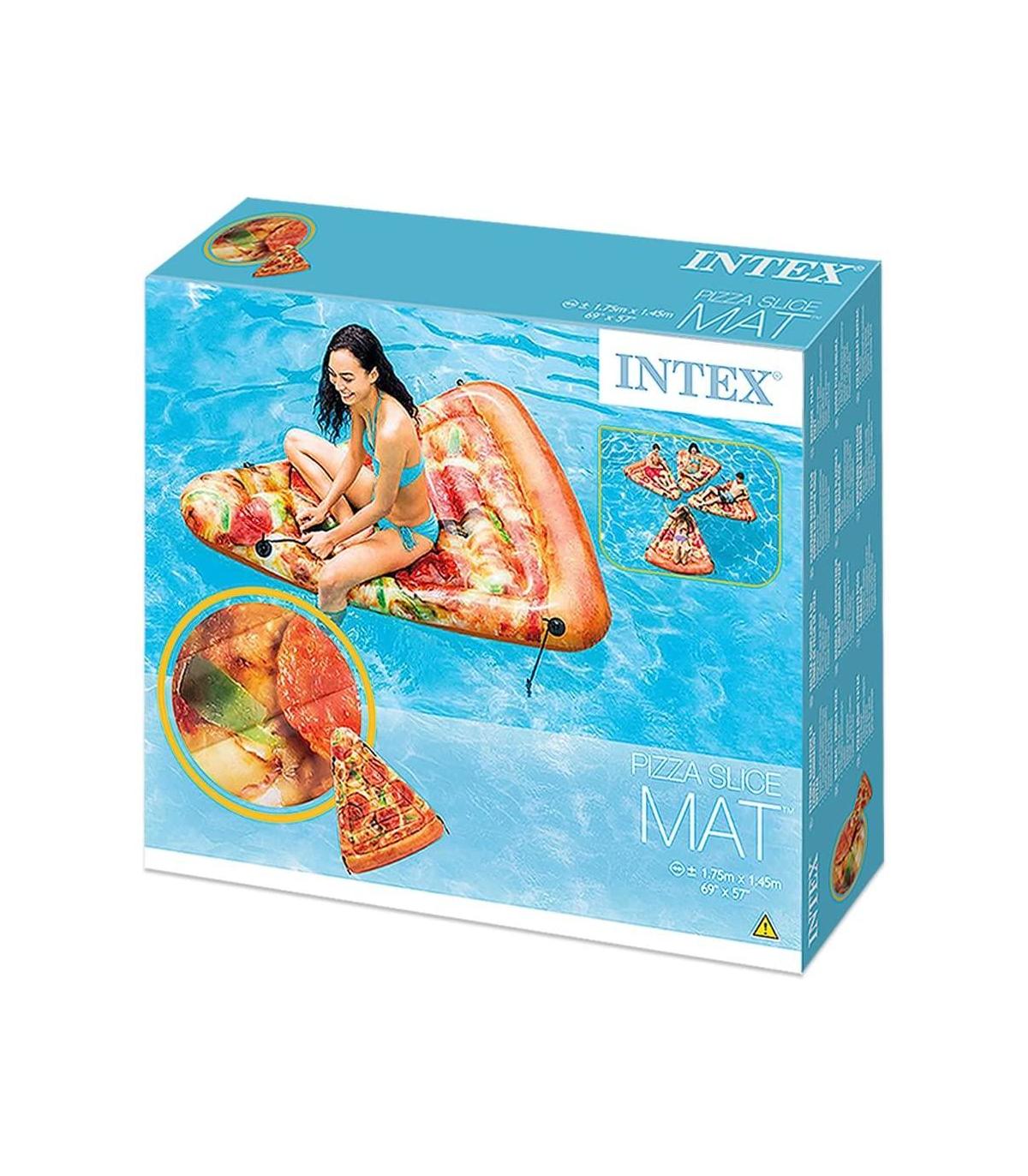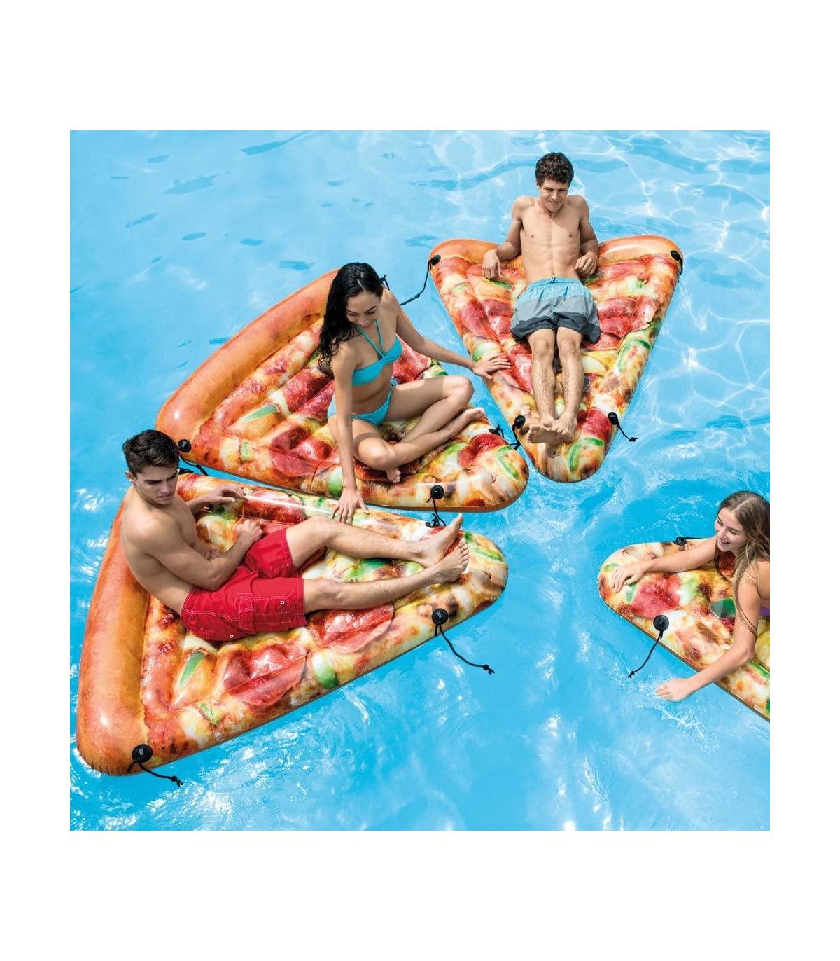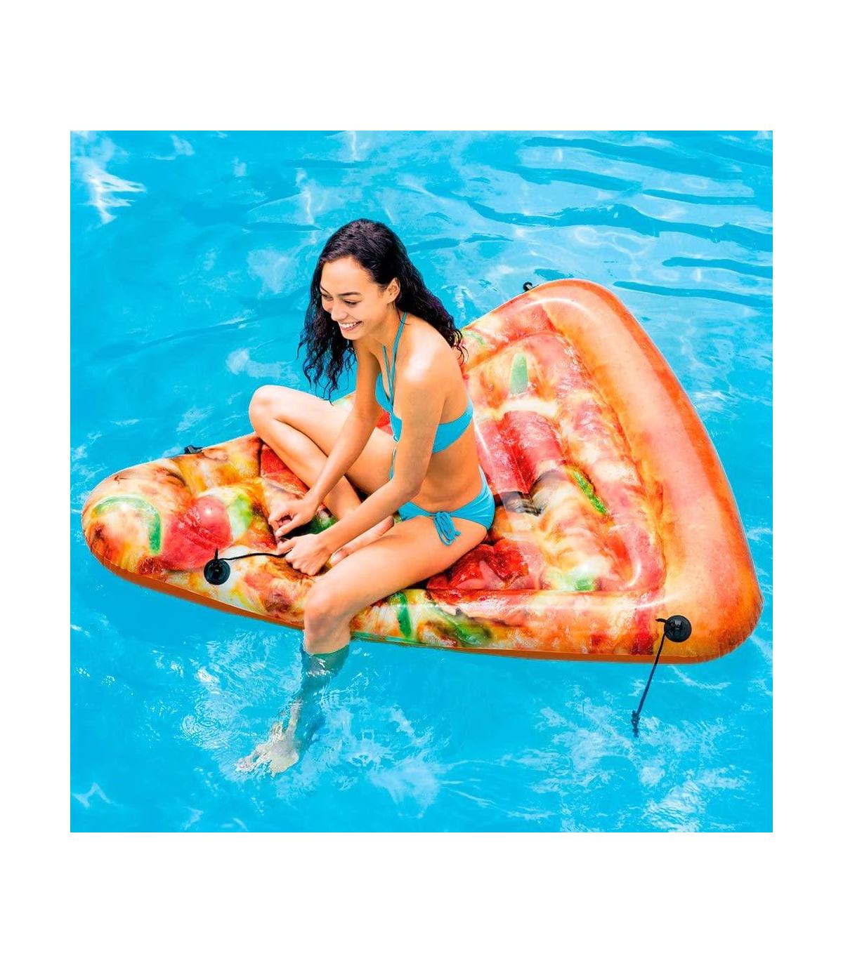 Pizza hinchable Intex con diseño de impresión fotorrealista; medidas: 145 cm (ancho) x 175 cm (altura)