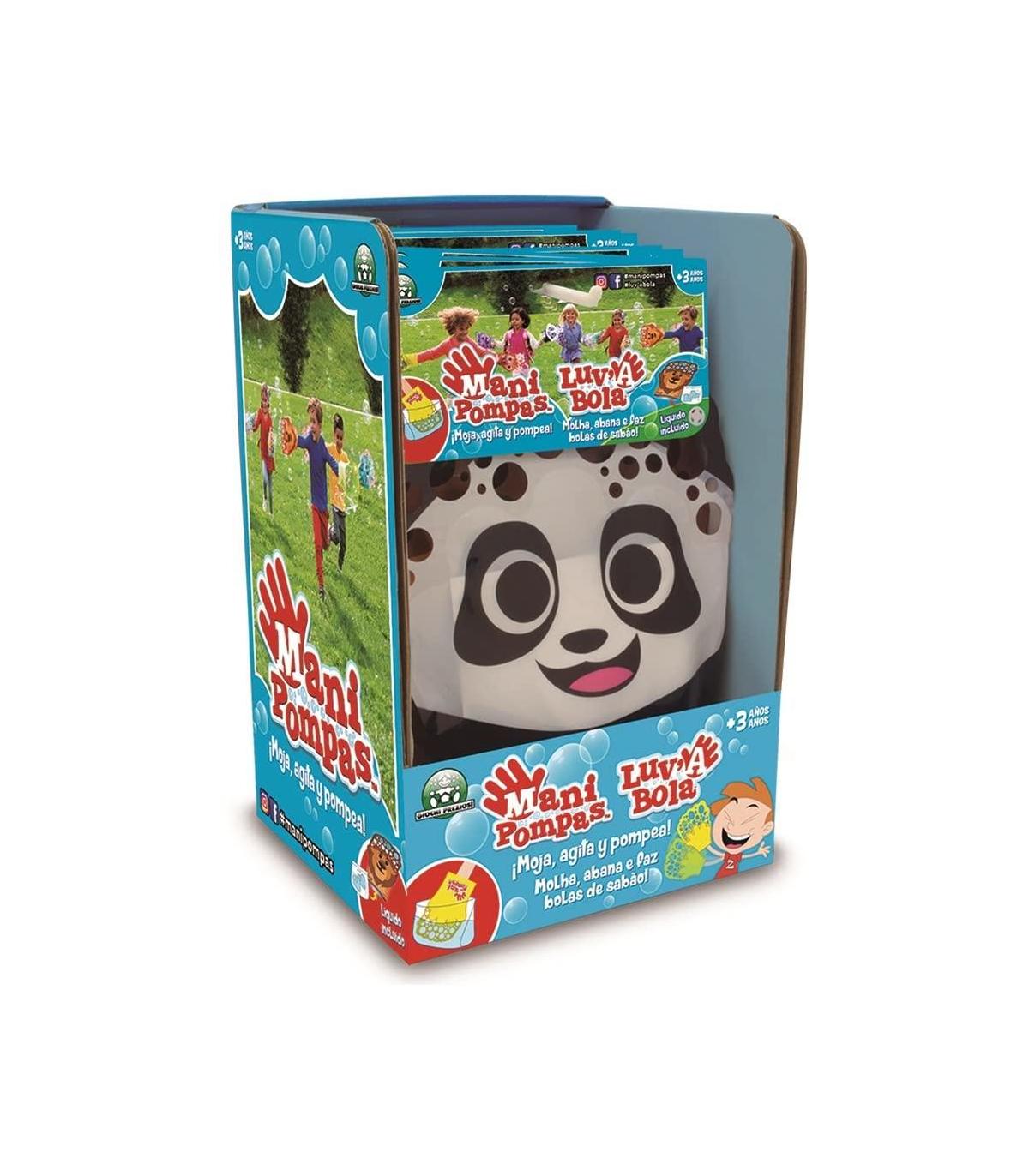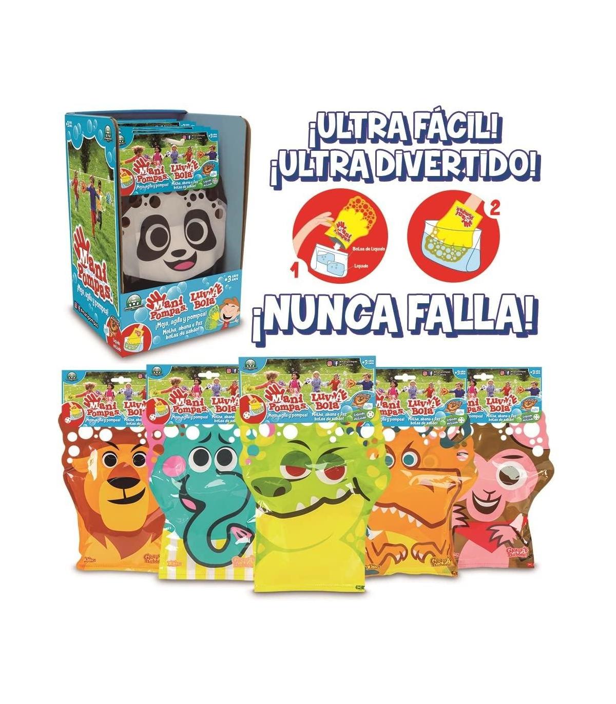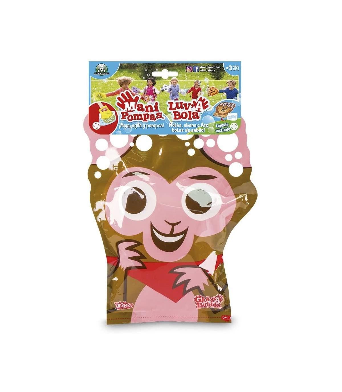 Mani-Pompas Guante Burbuja ¡Moja, agita y pompea sin parar! Haz tus pompas de jabón en cualquier parte! Cada guante incluye 2 sobres de liquido jabonoso.