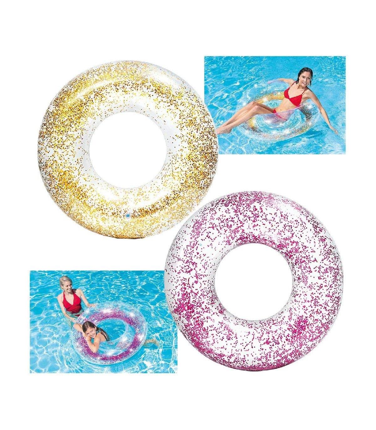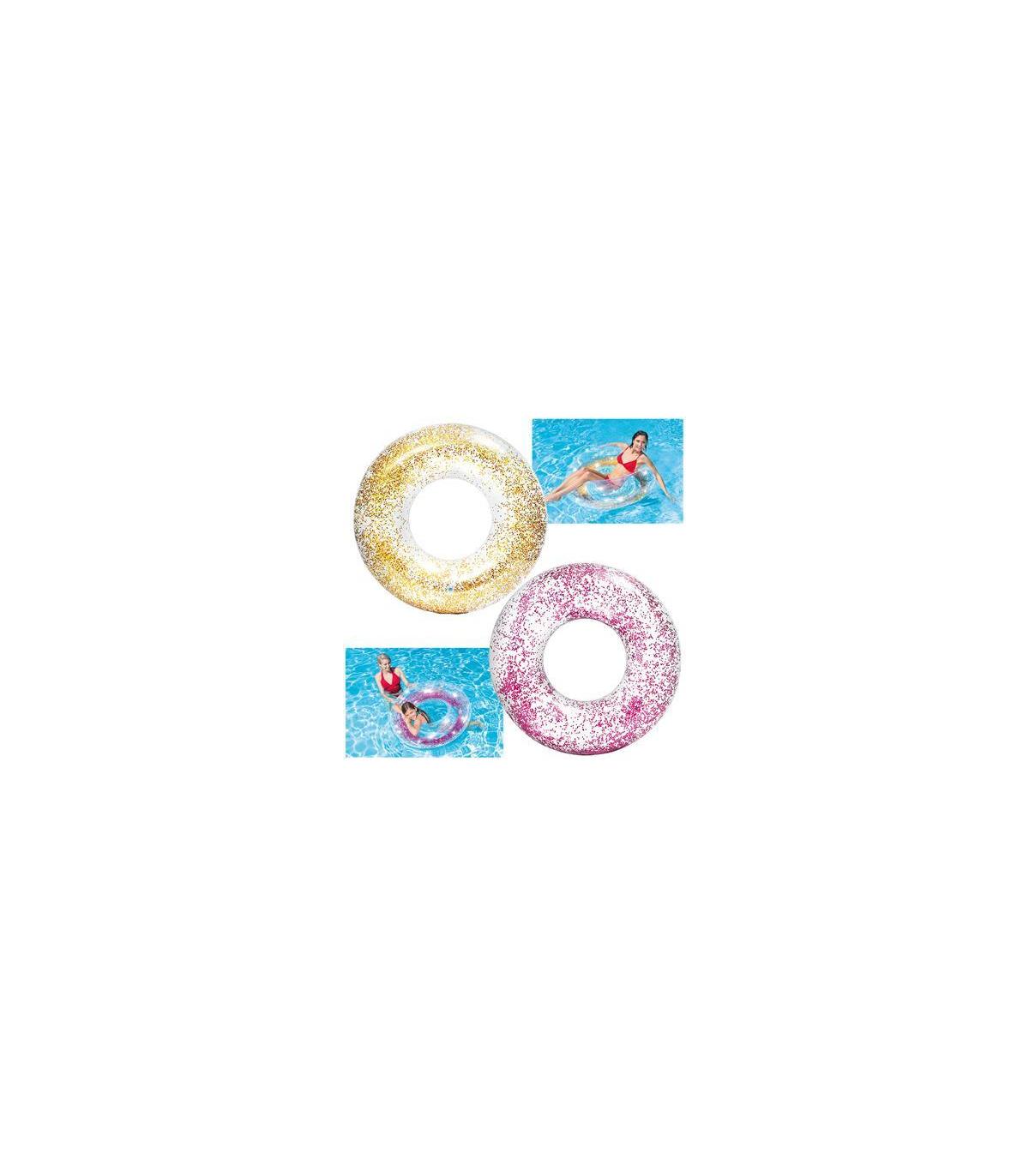 ¡Este verano brillarás incluso en el agua! Bonito flotador de purpurina de 119cm de diametro. Esta disponible en dos colores ¡Elige el que más te guste!