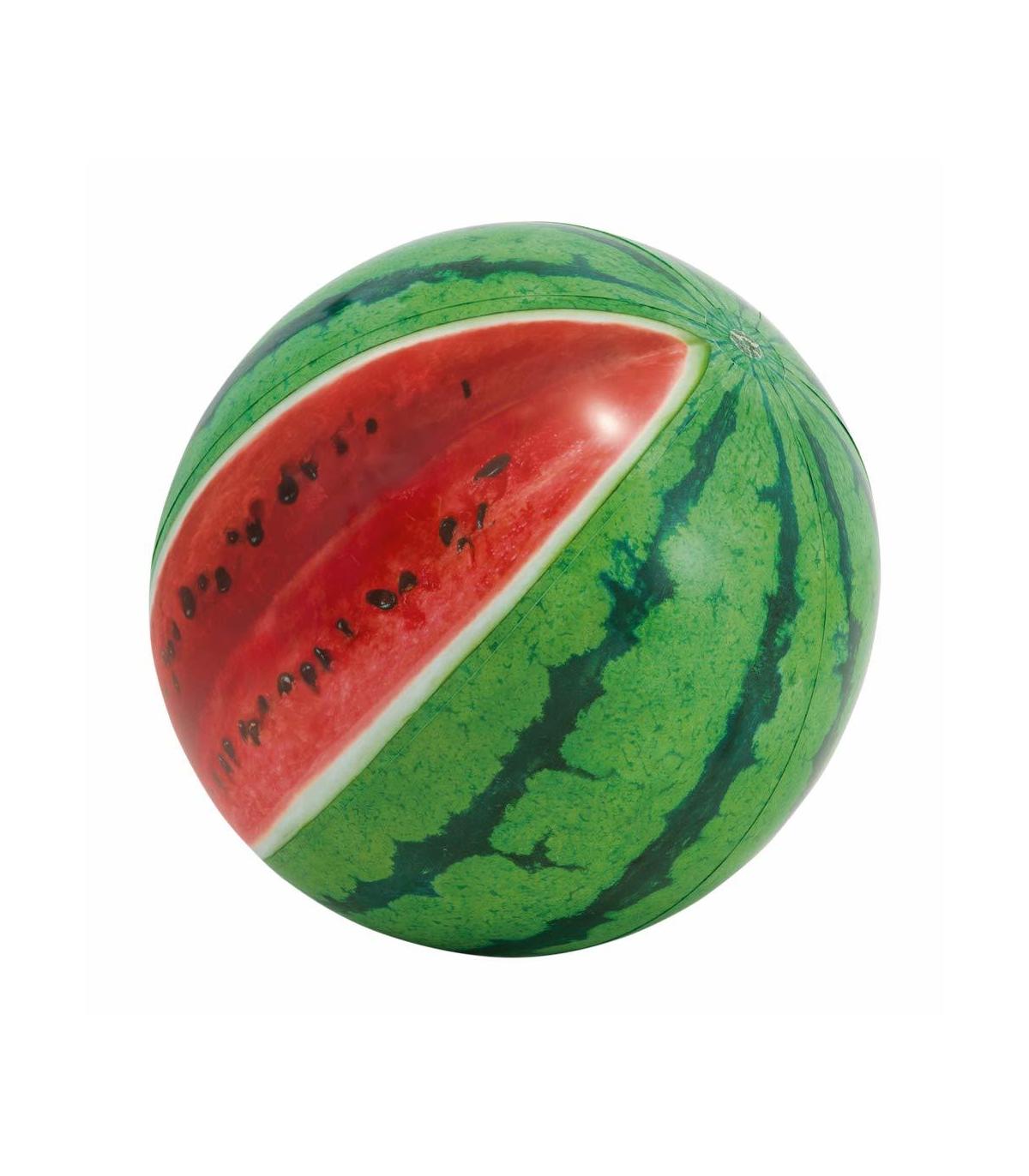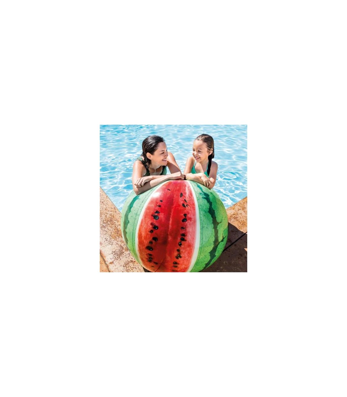 La pelota hinchable Sandía INTEX con impresión fotorrealista representa una sandía de verdad recién cortada. ¡Juega con quien quieras y donde quieras! La pelota tiene un diámetro de 107 cm y su vinilo un grosor de 0,23 mm. Está recomendada a partir de los 3 años de edad e incluye un parche de reparación. Ideal para la playa o para la piscina. ¡Disfruta tu verano con los hinchables INTEX!