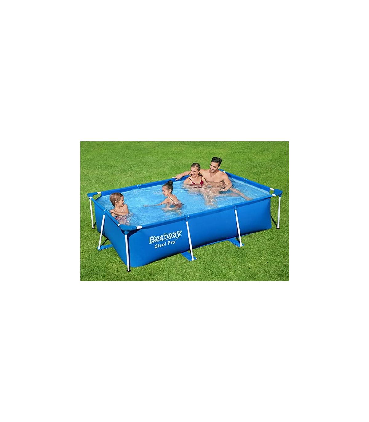 Muy estable, la piscina rectangular con resistente marco de acero no requiere herramientas para su montaje