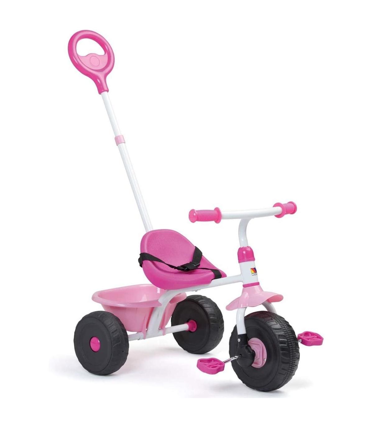 Urban Trike Baby Rosa Fácil de montar Con cinturones de seguridad y palo de empuje Gran calidad Mango con diferentes alturas Embrague para bloqueo de ruedas Cubeta portaobjetos antivuelco