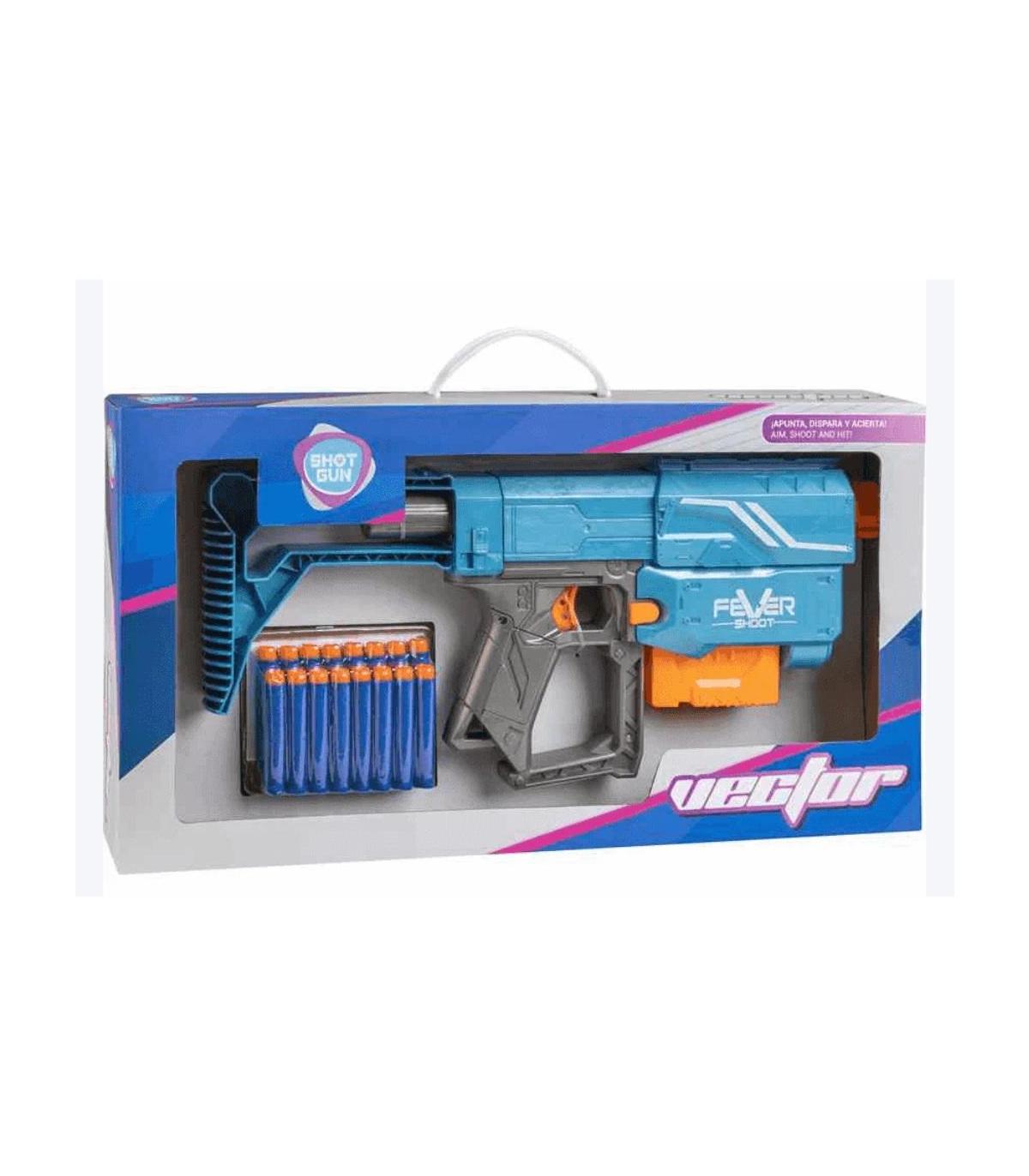 ¡Apunta, dispara y acierta! La lanzadera Vector de la marca Shot Gun de Toy Planet te alucinará. Cuenta con 16 dardos inofensivos y seguros. Clip de recarga rápida de hasta 12 dardos. Su cañón es extensible con guías inferiores y superiores. Ayúdate de su mango para ayudar a fijar el disparo y no se te escape.