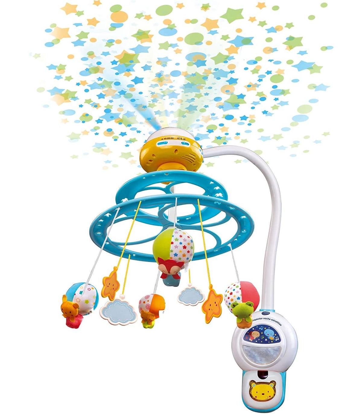 Vtech Móvil Proyector Noche Estrellitas El movil proyector Noche Estrellitas es perfecto para los más peques. Muevelo suavemente y se activará la música. Cuenta con 3 modos de juego: Nanas, Naturaleza y Descanso. Incluye mando a distancia, función de grabación de voz y programación de tiempo.