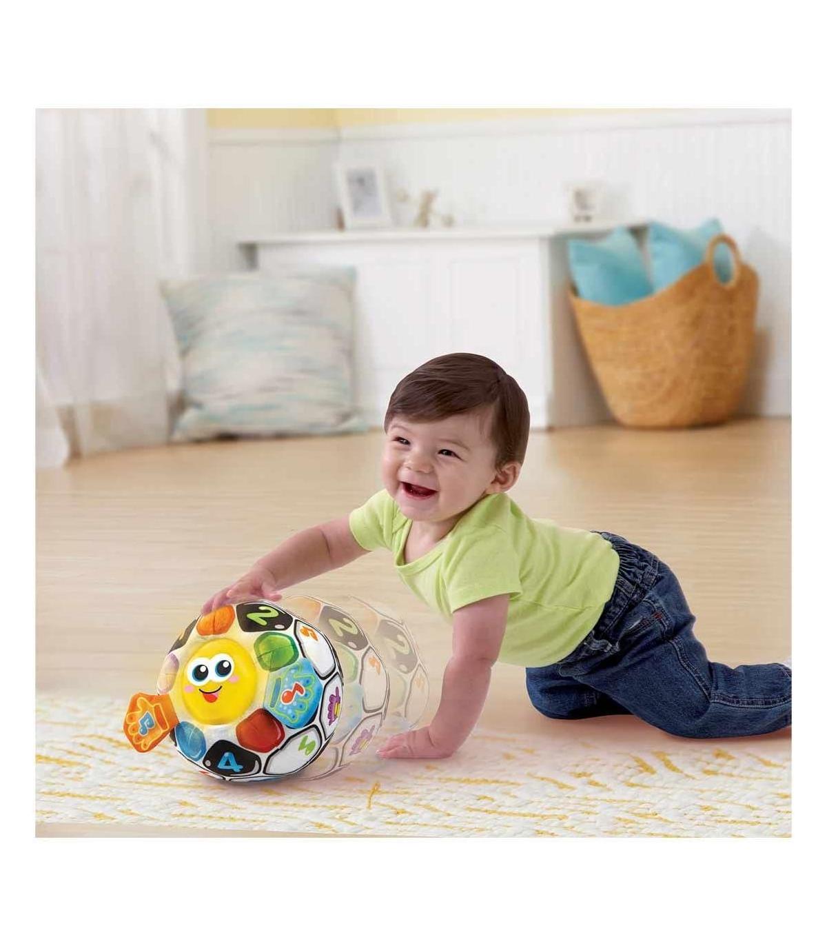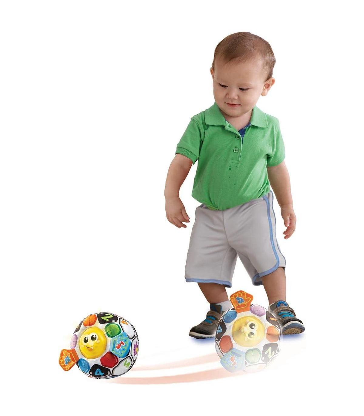 Divertido balón de fútbol con luces y música para hacer sus primeros descubrimientos. El bebé aprieta el botón luminoso de la cara de la bola y se activan melodías, frases divertidas y las luces se iluminan. Gracias al sensor de movimiento, el niño lanza
