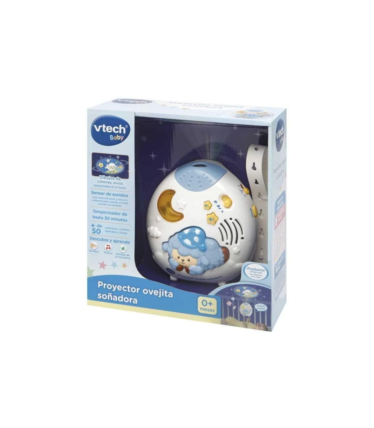 Divertido proyector de imágenes animadas en colores vivos en el techo para calmar al bebé durante la noche. Cuenta con 2 modos: nanas, melodías y dulces sonidos. Temporizador de 10, 20 y 30 minutos. Sensor de sonido que activa luces y música relajante par