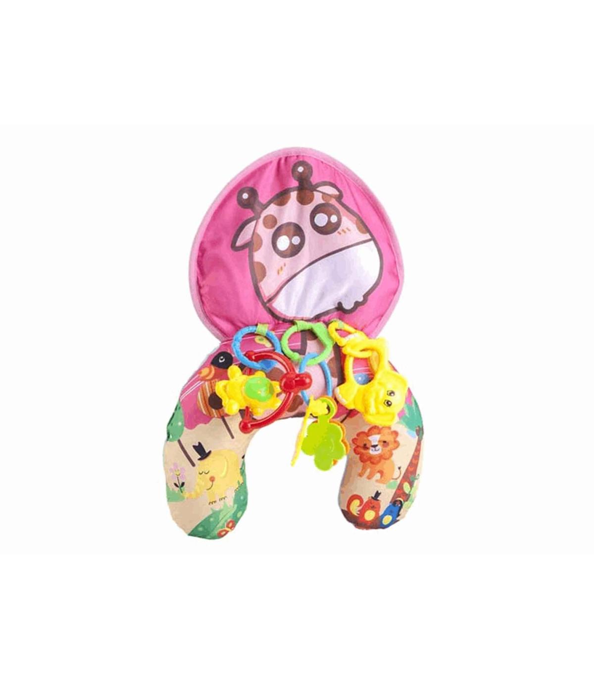 Cojín Actividades ¡Juega y aprende con comodidad! Cojín de actividades ideal para que tu bebé pueda jugar boca abajo, con comodidad y de forma segura. Incluye 3 juguetes colgantes que estimulan sus sentidos y su capacidad de manipulación. Con 3 juguetes colgantes.