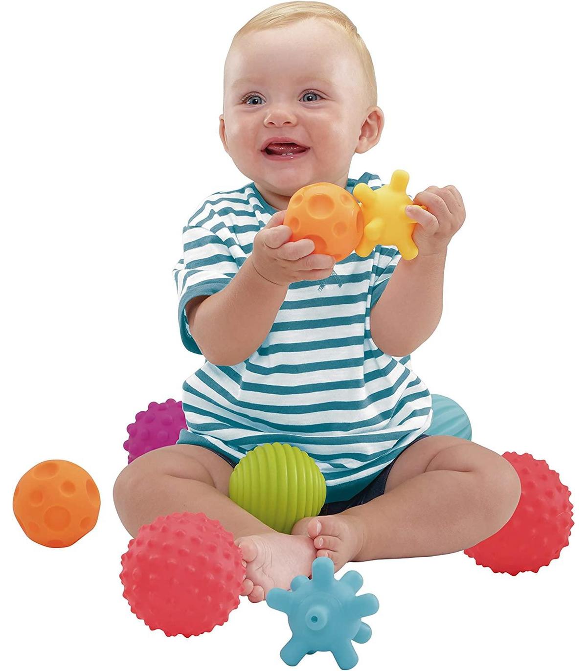 Bolsa Bolas Sensoriales 10 Pcs Descubre nuestras bolas sensoriales MOLTO con diferentes formas, colores y texturas. Bolas fáciles de agarrar, suaves, y blanditas. Los juguetes MOLTO se fabrican pensando en el desarrollo de tus peques según la edad. Tienen en cuenta las capacidades sensoriales, motoras y de juego. Son juguetes de aprendizaje, actividad y entretenimiento infantil. Nuestra linea de juguetes Play&Sense son fáciles de coger y encajar, ayudan al desarrollo de sus habilidades psicomotrices y son totalmente seguros. Este modelo incluye 10 unidades de diferentes colores, formas y texturas. Cada figura es distinta para que tus peques aprendan mientras se divierten.
