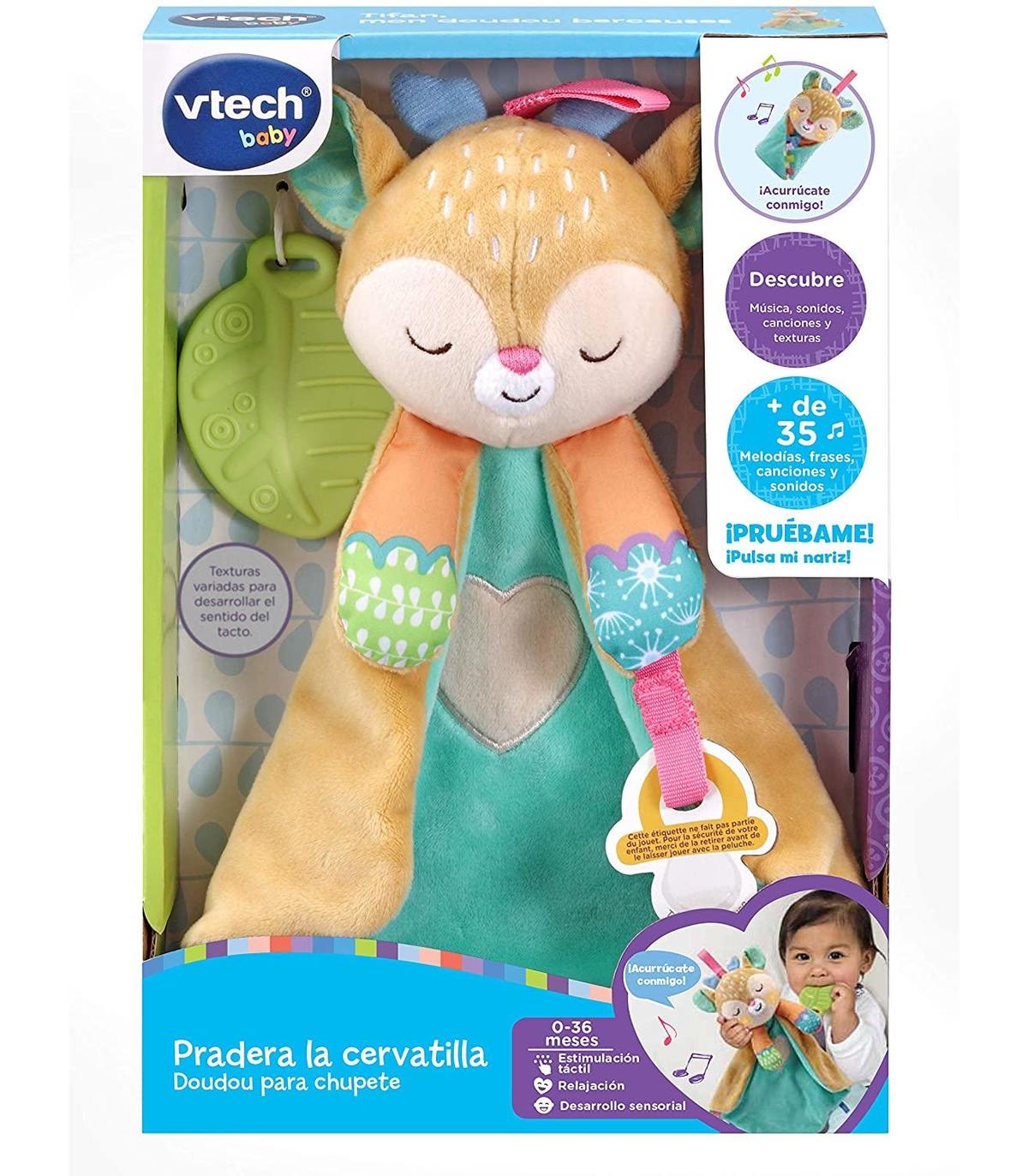 Una suave mantita de acompañamiento para guardar su chupete. Adorable personaje de ciervo con doble función: mantita con peluche y chupetero