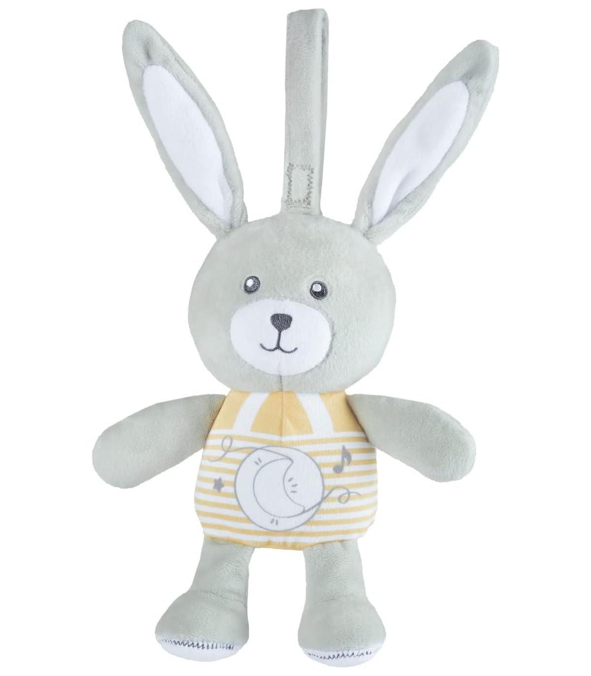 SUAVE PELUCHE RELAJANTE: El conejo Stardust es un peluche de tela suave; al presionar su barriguita, se activan melodías clásicas y una suave luz para acompañar al bebé en su sueño