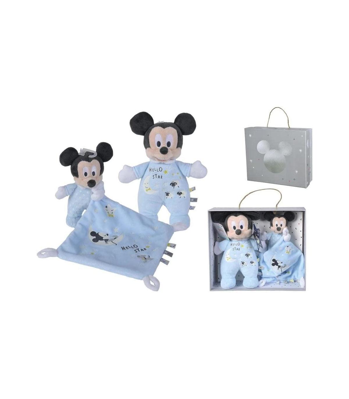 Caja regalo con asa que incluye peluche de Mickey 25cm y doudou de Mickey