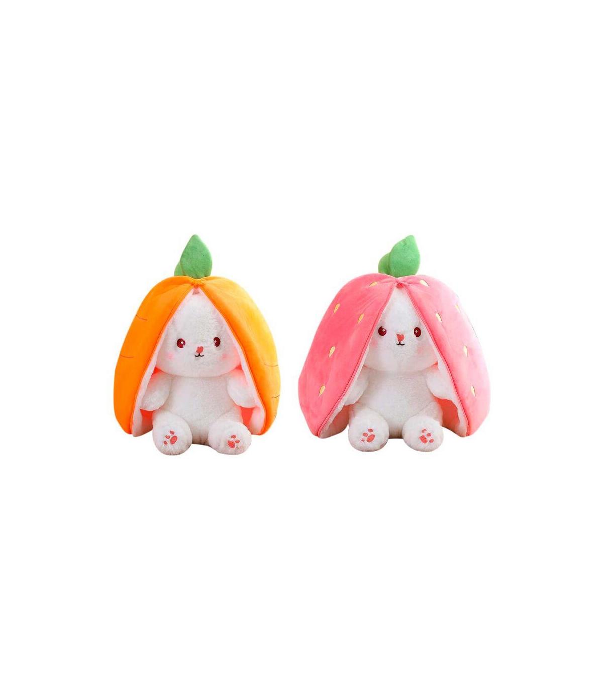 Peluche Conejo Reversible Surtido ¡Este adorable peluche conejo es más que un simple peluche! Con sus 18 cm de tamaño, sus orejas pueden envolver y transformarlo en una fresa o una zanahoria, ¡dando lugar a un peluche versátil y divertido! Características: Reversible: Con un simple movimiento, puedes cerrar con cremallera las orejas del conejo y transformarlo en una adorable zanahoria o fresa supersuave y blandita, ideal para abrazar. Versátil y Divertido: Si prefieres, puedes dejar las orejas abiertas y jugar con tu conejo peluche favorito, suave y adorable. Tamaño Ideal: Con 18 cm de altura, es perfecto para abrazar y llevar a todas partes. Surtido: Disponible en dos modelos que se sirven aleatoriamente, zanahoria o conejo . ¡Lleva la diversión y la ternura a casa con este encantador peluche conejo reversible!