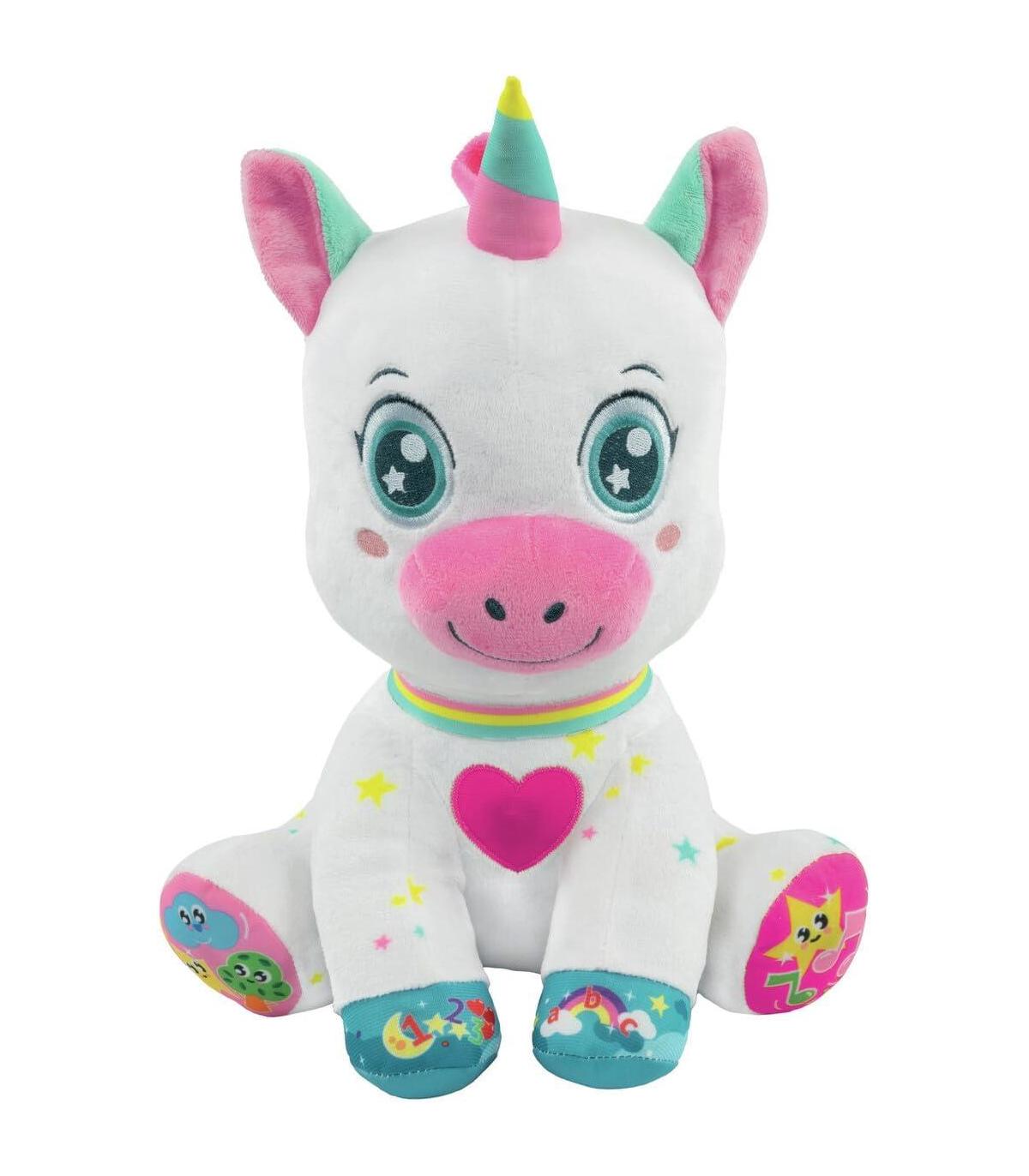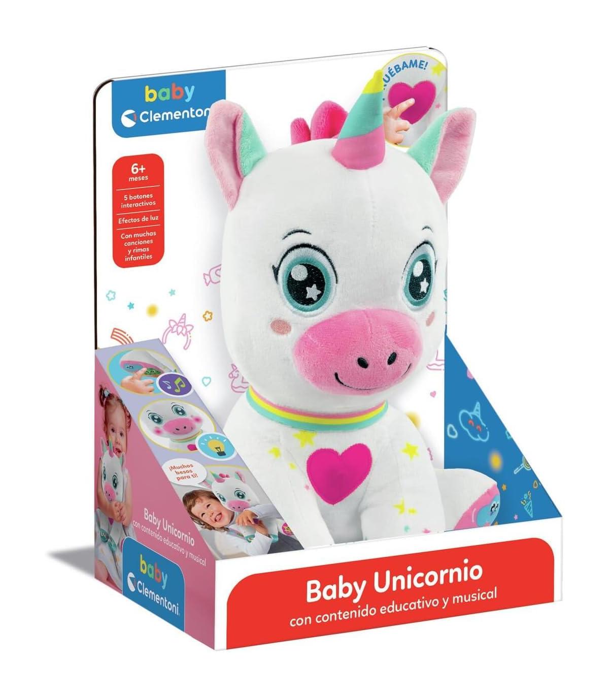 Peluche Interactivo y Educativo: Baby Unicornio es un tierno peluche que introduce a los bebés en el mundo de los juegos interactivos. Con efectos sonoros y luminosos, enseña las primeras letras y números de manera divertida y sencilla