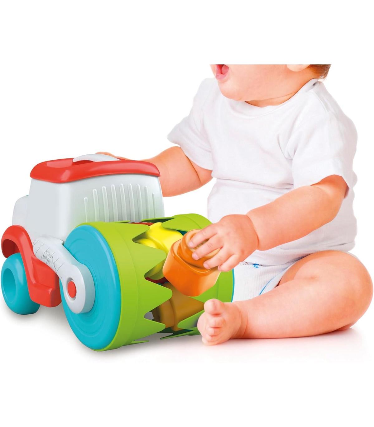 El niño se divertirá haciendo que el suave rodillo se coma los bloques, construyendo montones de torres, introduciendo los bloques por la ventanilla y recuperándolos abriendo el maletero trasero.