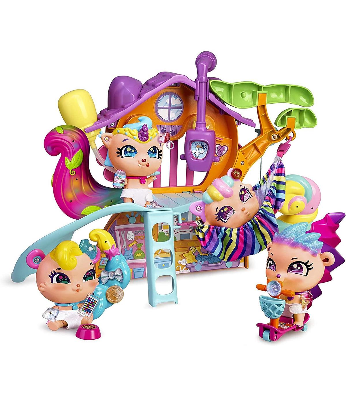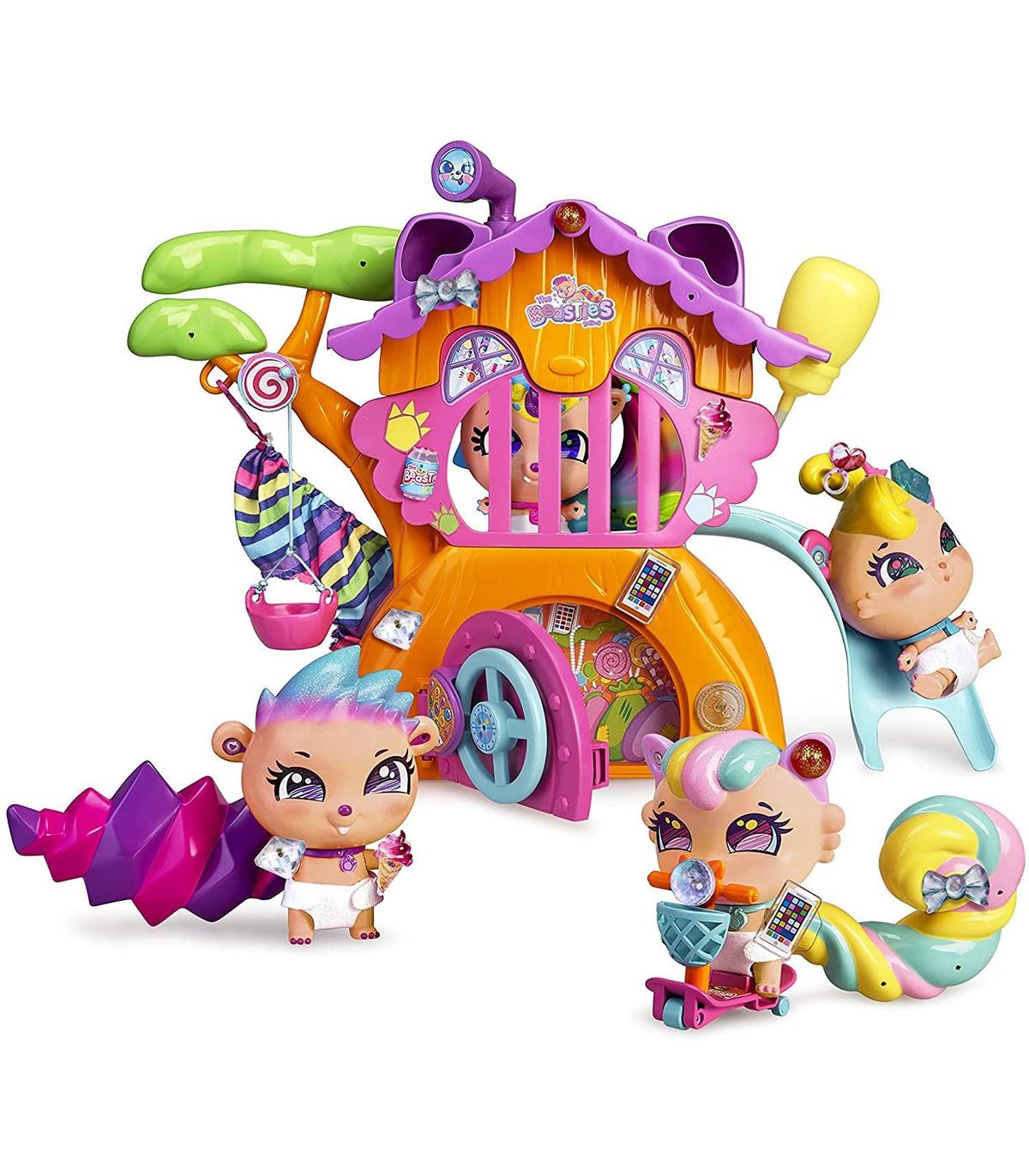 Beastree House es el playset de los Beasties donde guardan todo lo que quitan a los Bellies. En una de las ramas tiene una cesta para poder subir todos los objetos al Beastree House, una hamaca para descansar y un biberon. Podrán espiar Bellyville a través del telescopio y así decidir cuándo pueden atacar de nuevo. Cuando estén listos, podrán bajar por el tobogán y subirse al patinete para poder ir más rápido. Incluye un montón de accesorios para que la experiencia de juego sea super completa. No viene incluido muñeco.
