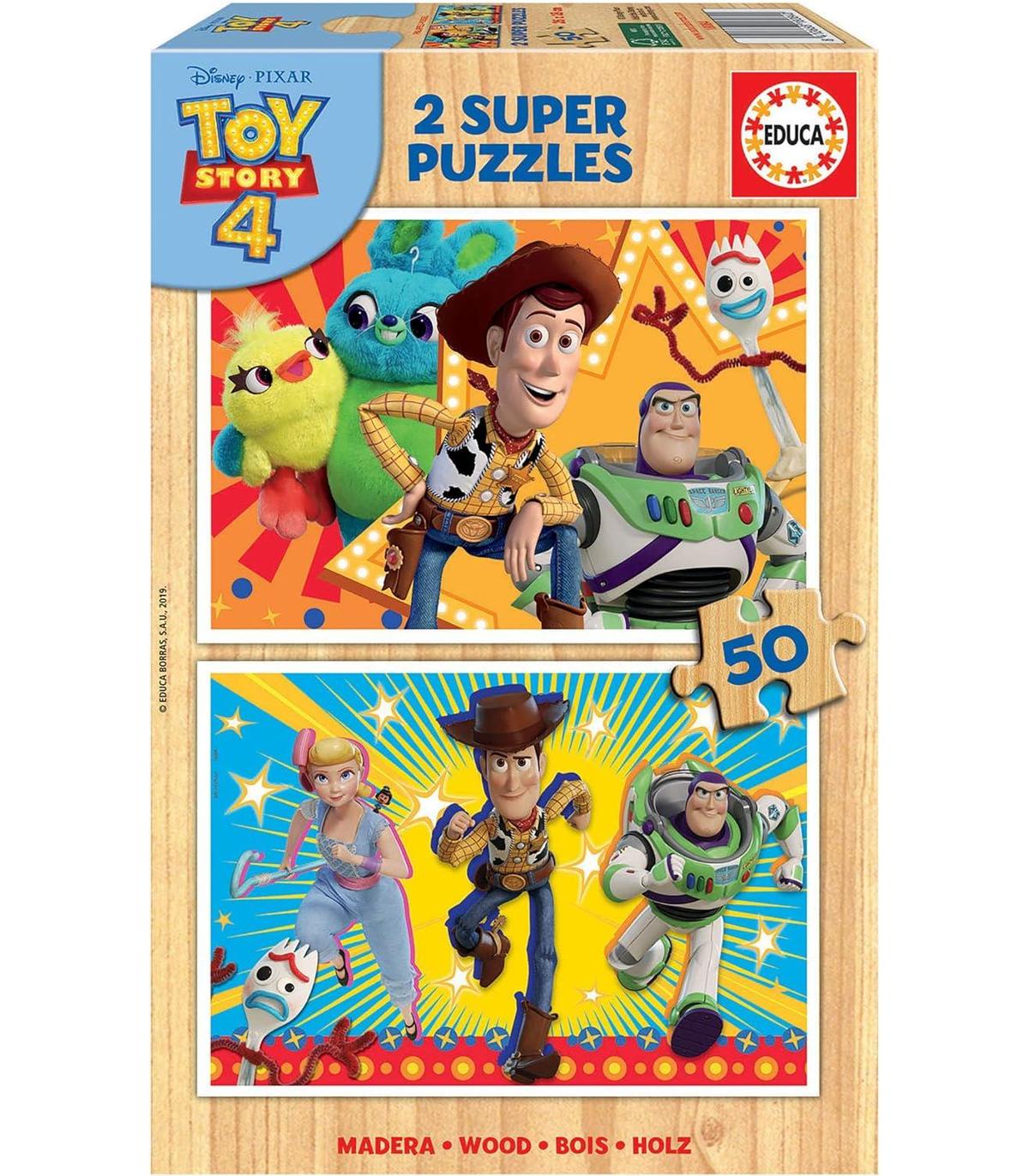 Dos puzzles de 50 piezas diversión por partida doble; dimensiones aproximadas del puzzle montado: 26 x 18 cm Puzzles inspirados en Toy Story 4 Puzzles de madera ecológica, más resistente y más segura para los niños (no genera astillas); compuestos por grandes piezas, perfectamente acabadas para que sea sencilla y segura su manipulación por los niños Los puzzle estimulan la fijación de la atención así como el desarrollo de la psicomotricidad, la curiosidad e imaginación de los más pequeños Recomendado a partir de 4 años