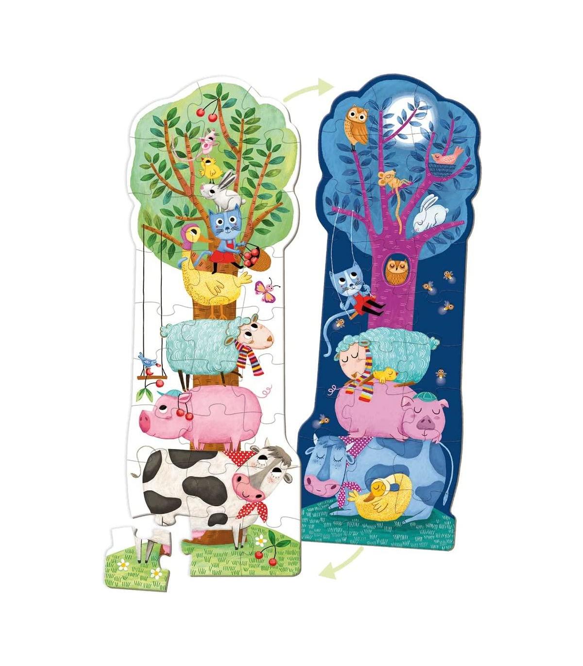 APRENDE JUGANDO: ¡Une las piezas de este puzle y monta la escena de día y de noche! Brilla en la oscuridad