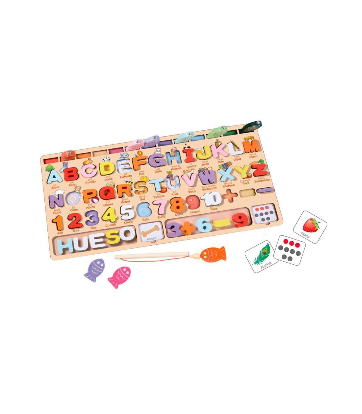 Este original juego de pescar educativo con piezas de madera es el regalo perfecto para los bebés de 3 a 5 años. Con este tablero de actividades, los pequeños podrán aprender mientras juegan y mejorar sus habilidades cognitivas, motoras y de observación. Aprenderán números, letras y figuras. ¿Qué estimula este juego? Habilidades cognitivas: El juego fomenta la concentración, la observación y el pensamiento lógico. Los niños tendrán que mirar cuidadosamente las piezas para encontrar la correcta. Habilidades motoras: El juego ayuda a desarrollar la motricidad fina, la coordinación ojo-mano y la destreza manual. Los niños tendrán que usar sus dedos y manos para agarrar las piezas. Habilidades de observación: El juego ayuda a los niños a reconocer letras, números y formas. ¿Cómo se juega? El juego es muy sencillo. Los niños tendrán que usar las cañas para pescar las piezas del tablero. Las piezas incluyen los números del 1 al 10 y también encontrán las letras del abecedario además de unas tarjetas de juego y unos pececitos de madera para pescar por lo que los niños podrán aprender los números mientras juegan. Características: Este juego educativo es el regalo perfecto para los bebés de 3 a 5 años. Es un juego divertido y educativo que ayudará a los niños a aprender mientras juegan. ¡Adquiere tu juego de pescar educativo hoy mismo y ayuda a tu pequeño a aprender y divertirse!