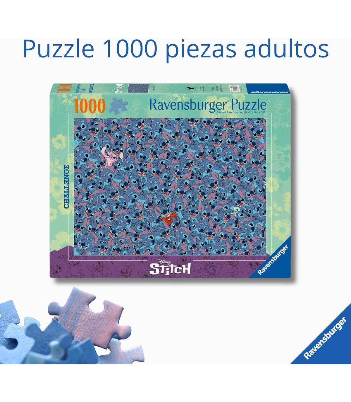 Stitch Challenge 1000pc PUZZLE STITCH: Este es un puzzle 1000 piezas de la pelicula Lilo y Stitch, perfecto para fans de Disney que disfrutan de los desafíos; una imagen colorida y entrañable de los personajes, ideal para pasar horas de entretenimiento y decorar una vez terminado. PUZZLE 1000 PIEZAS: Disfruta de un agradable descanso con la colección de puzzle 1000 piezas y, una vez completado el puzle, exhíbelo en la pared con el pegamento Ravensburger puzzle Permanent Conserver; gracias a la tecnología Soft-Click, cada pieza de puzzle encaja perfectamente. DESAFÍA TU CONCENTRACIÓN: Los puzzles adultos Ravensburger son el regalo perfecto para todos aquellos que quieren disfrutan de un momento de ocio y relax poniendo a prueba sus habilidades lógicas y de concentración con estos puzzles para adultos. CALIDAD PREMIUM: Disfruta y diviértete construyendo este puzzle 1000 piezas de Ravensburger, famosos por su alta calidad, diseños y robustez; fabricados de cartón reciclado y cortados con troqueles hechos a mano para un acabado impecable con estos puzles 1000 adultos. DESCUBRE TODAS LAS COLECCIONES: Explora el universo de los puzzles 1000 piezas de Ravensburger para que los niños descubran animales y mundos fantásticos mientras juegan con sus personajes favoritos; con los pegamentos Ravensburger podrás fijarlos fácilmente para enmarcarlo y colgarlo este puzzle 1000 piezas.