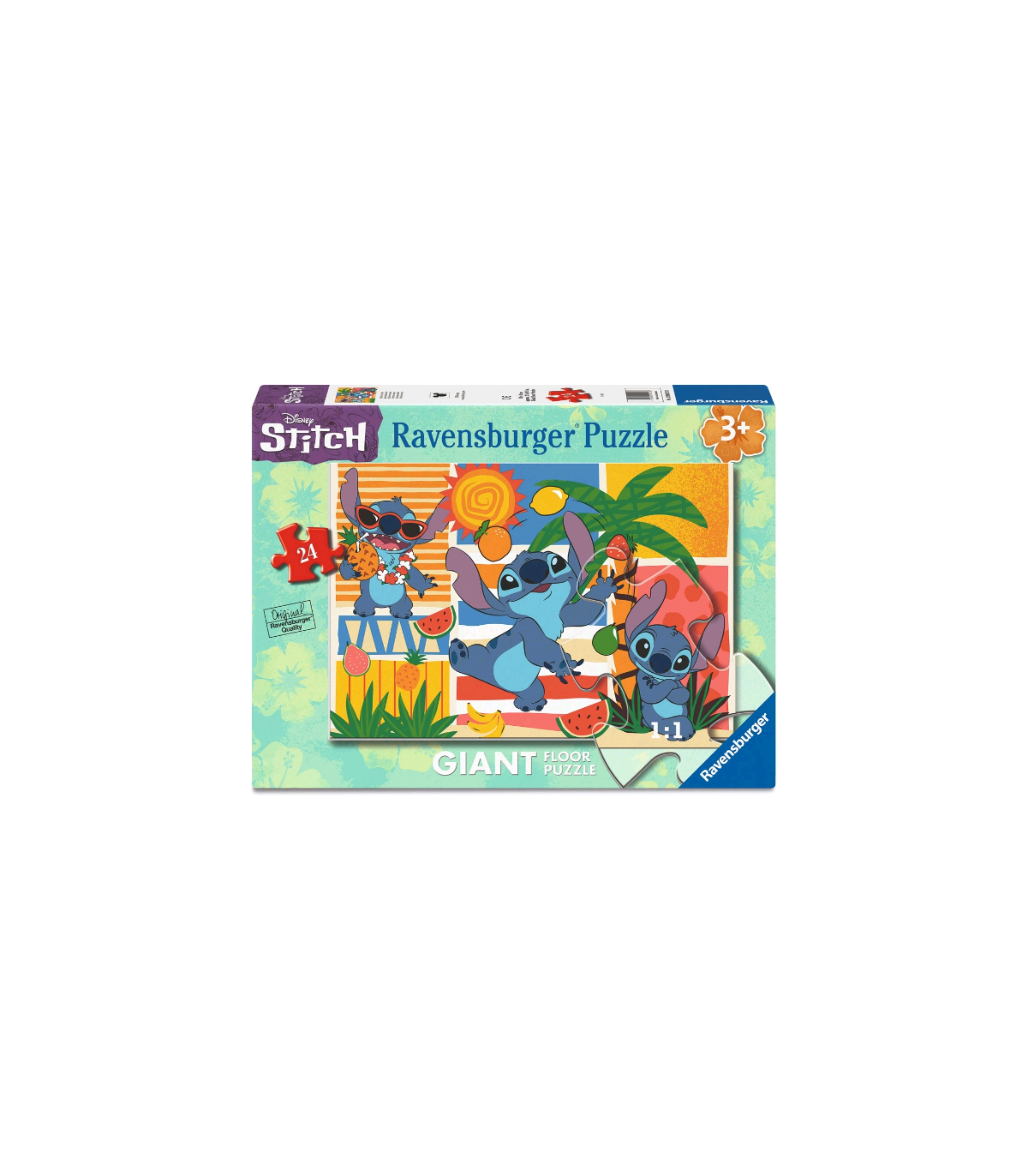 Puzzles Stitch 24 piezas Giant – Ravensburger. Sorprende a tus clientes con este divertido puzzle gigante de Stitch, el entrañable personaje de Disney. Con 24 piezas grandes, es perfecto para los más pequeños, ofreciendo una actividad educativa y entretenida que fomenta habilidades motoras y la creatividad. Fabricado por Ravensburger, líder mundial en puzzles, garantiza piezas de alta calidad, resistentes y seguras para niños. La ilustración captura a Stitch en una pose adorable, ideal para fans de este querido personaje. Un producto excelente para tiendas de juguetes, regalos y artículos de cultura pop, pensado para cautivar a familias y coleccionistas por igual.