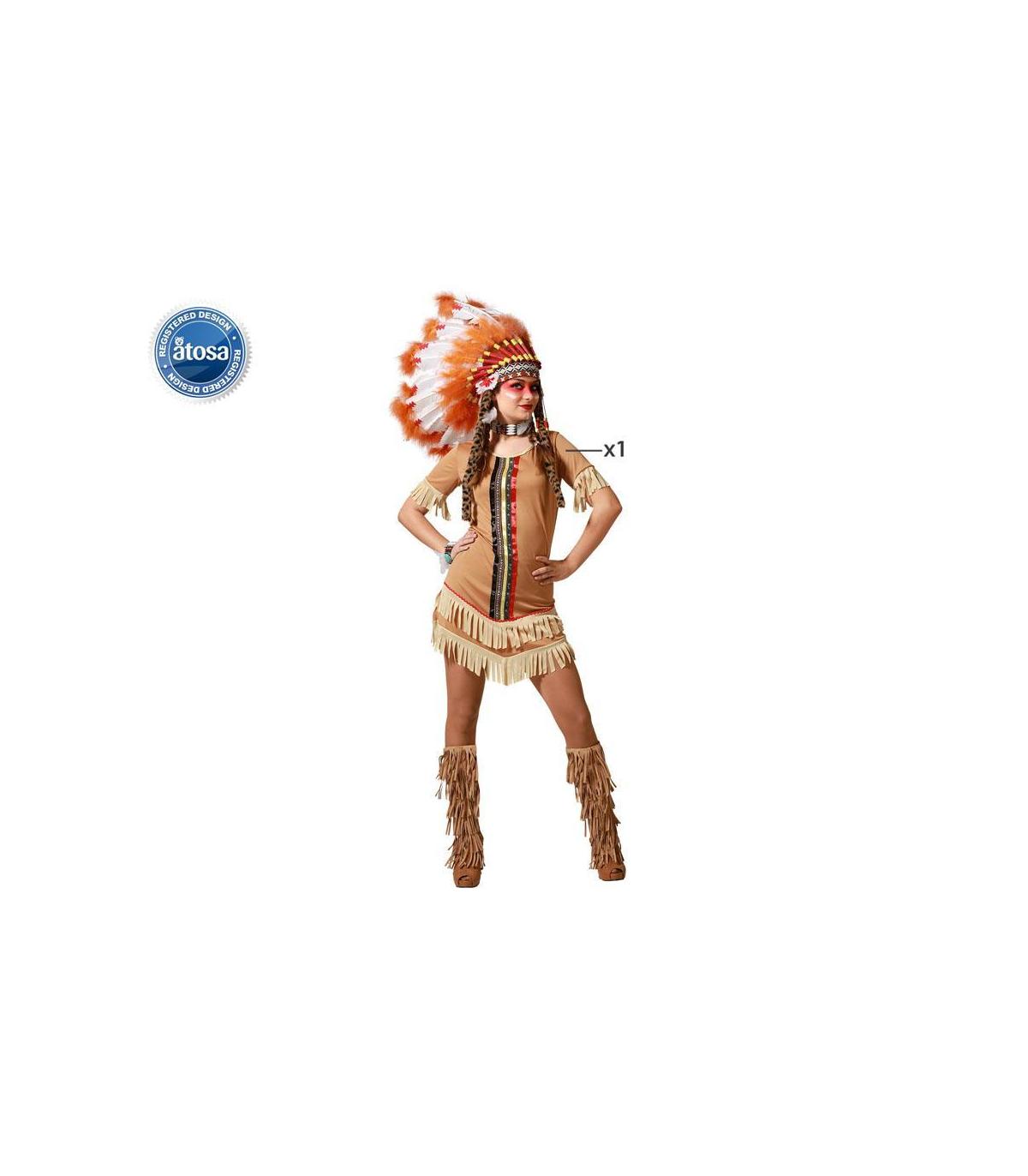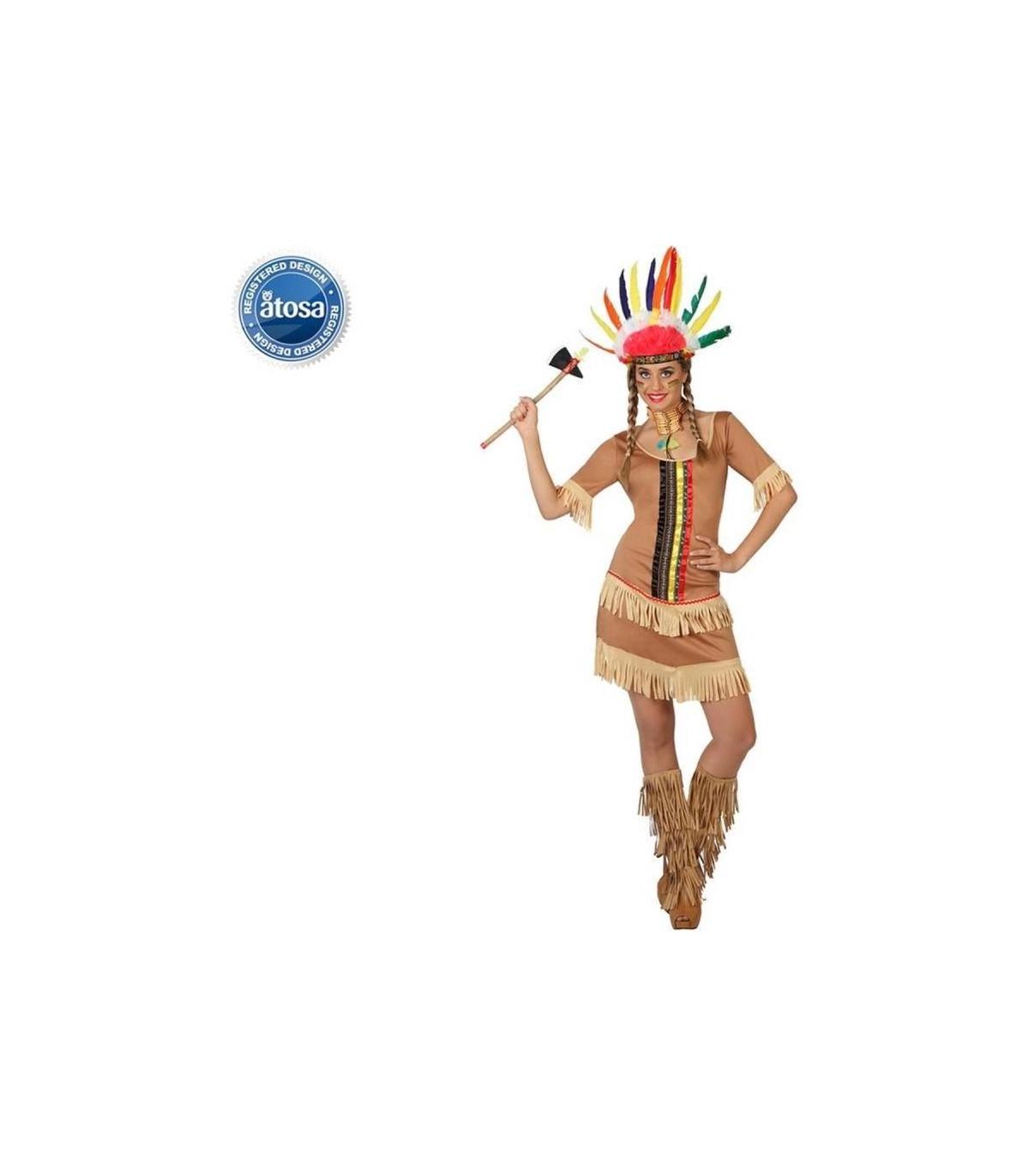 Disfraz de india para adulta. Esta formado por vestido de manga corta con flecos.
