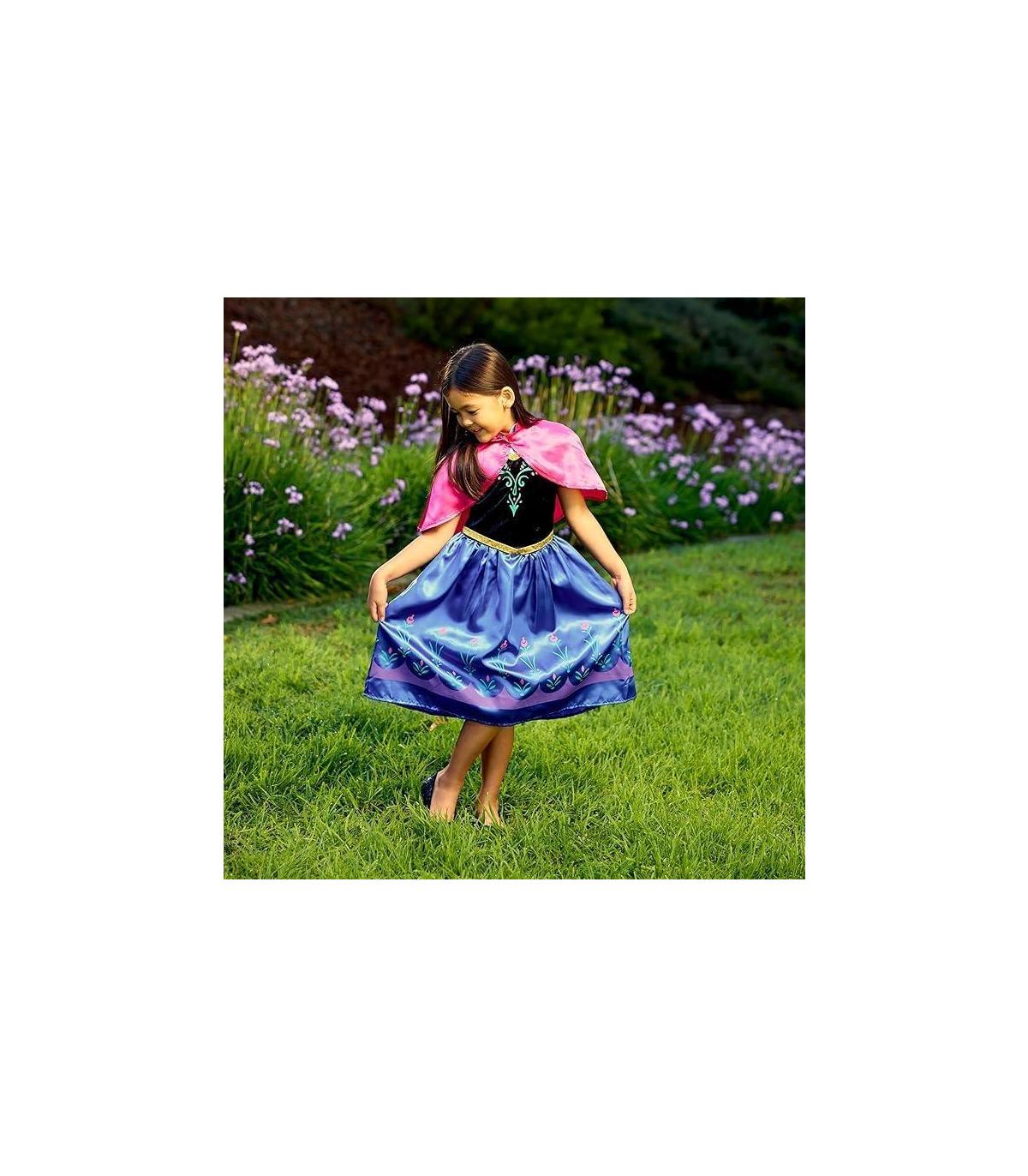 CARACTERÍSTICAS MÁGICAS: Este Precioso Disfraz de Anna Cuenta con su Icónico Vestido Compuesto por una Falda Azul y un Cuerpo Negro con Detalles Florales Decorativos, y una Banda Dorada Alrededor de la Cintura. ¡El look se Completa con la Capa Rosa de Anna!