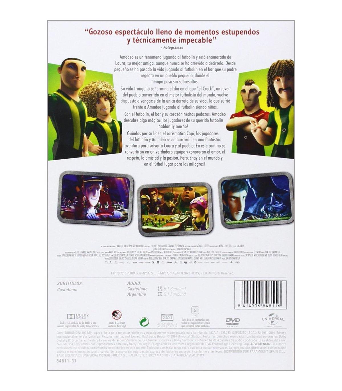 ARTICULO DE SEGUNDA MANO Amadeo es un enamorado del fútbol, tanto que se ha convertido en un jugador imbatible del futbolín que se encuentra en un pequeño bar del pueblecito donde vive. Grosso, el bravucón del lugar, desafía a Amadeo a jugar un verdadero partido de fútbol porque sabe que no puede ganarle al futbolín. Es entonces cuando los jugadores del futbolín cobran vida y, tras un montón de aventuras, ayudan a Amadeo en su partido contra Grosso? y durante el resto de su vida.