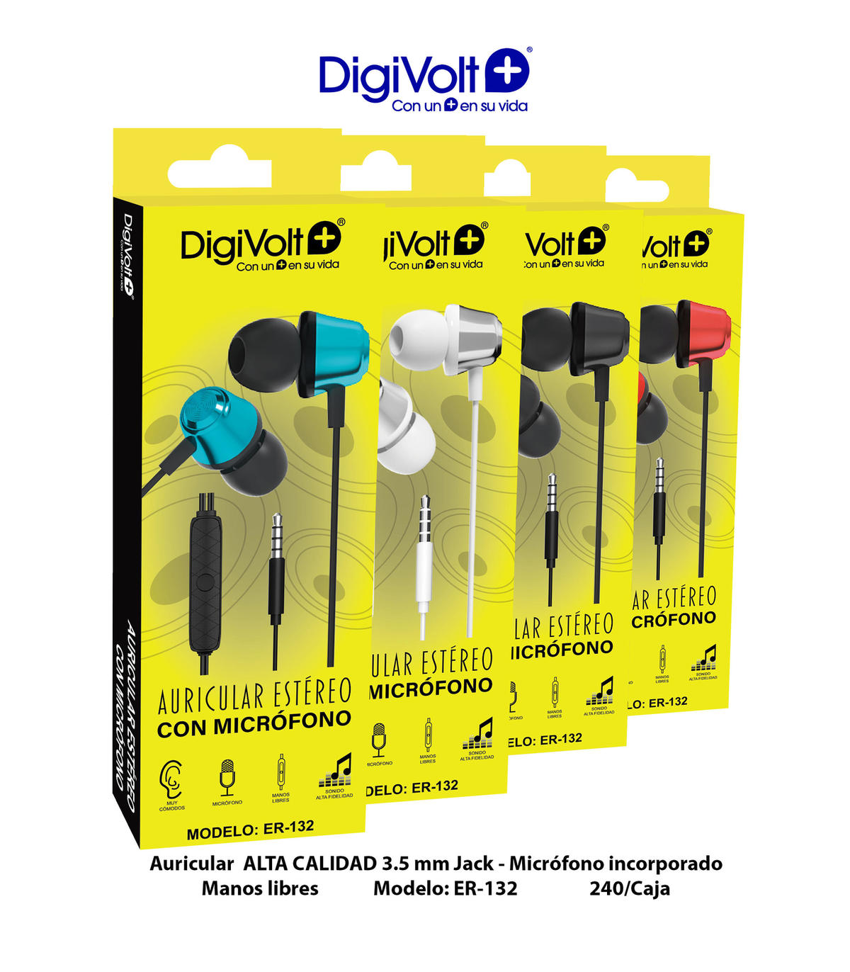 Auricular Estéreo para Móvil con Micrófono ER-124 Digivolt - Escucha la música y habla con tus contactos - Reducción de ruido, diseño elegante y ligero - Super bass y claridad excepcional - Ajustan fácilmente a...