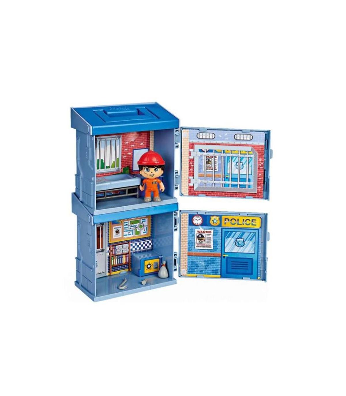 Pinypon Action. 2 Mixópolis Boxes. Policía Los Mixópolis Boxes son combinaciones de 2 escenarios de juego y a la vez 2 prácticos contenedores para guardar las figuras y piezas. Dos diferentes cubos apilables con asa para llevar a todas partes, jugar con ellos y vivir diferentes aventuras en la ciudad de Mixópolis. Cada box se puede abrir. La versión policía tiene comisaría y cárcel. Contiene una figura y accesorios.