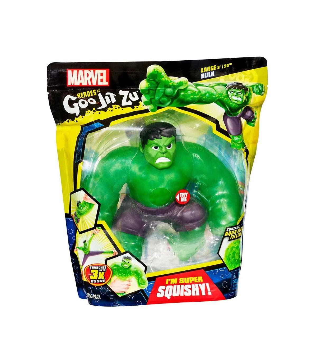 Super Figura Heroes Goo Jit Zu Hulk Super Figura individual Superhéroe Goo Jit Zu- Marvel de Hulk El conocido personaje de la masa verde se ha transformado aumentando su tamaño habitual para poder derrotar a todos sus enemigos y salvar el mundo. ¡Un tamaño de más de 20 cm! Gracias a su viscoso relleno verde, se estruja y se estira ¡hasta 3 veces más su tamaño! Vence a todos los villanos con la ayuda del increíble Hulk y ¡desata todo su poder Goo Jit Zu! Colecciona los superhéroes más poderosos del universo Marvel