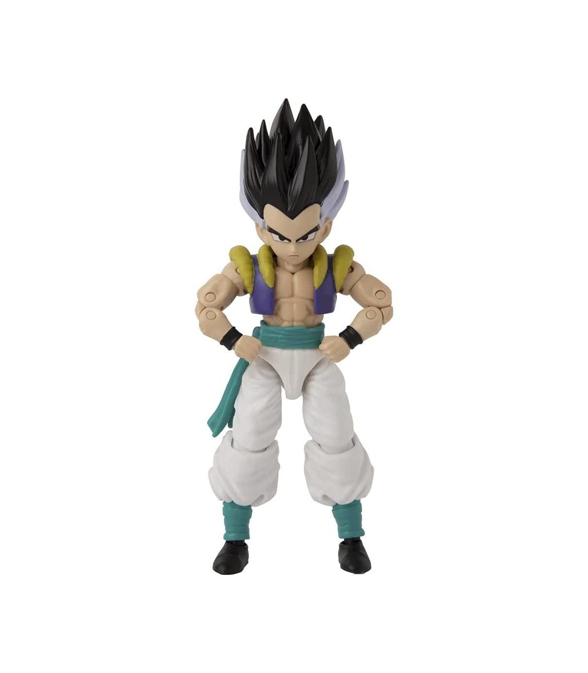 Dragon Ball Stars Series Figura Gotenks Te presentamos la serie Dragon Stars para los auténticos fans de Dragon Ball. Podrás recrear todas las aventuras de tus personajes de anime favoritos. La figura es Gotenks, mide 17 cm y tiene con 17 puntos de articulación. Recomendada para mayores de 4 años. No recomendable para menores de 3 años, ya que contiene piezas pequeñas que podrían provocar asfixia en caso de ser ingeridas por el niño/a.