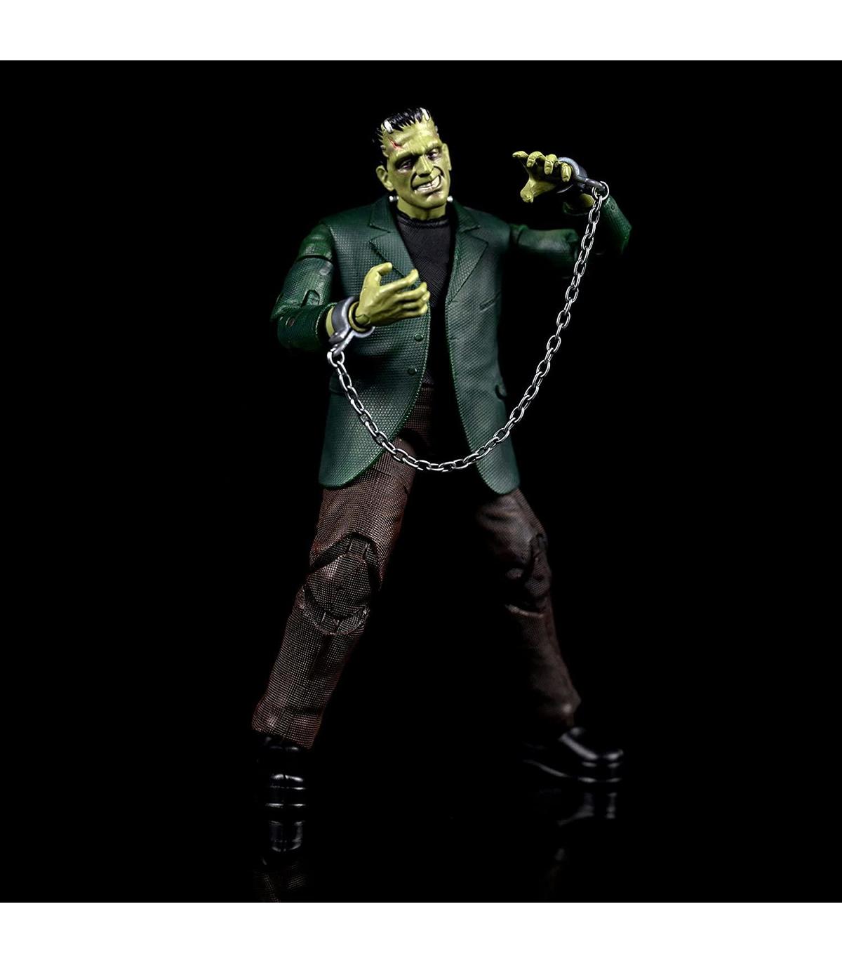 Figura articulada de 15cm del famoso icono popular del cine de terror Frankenstein. Con cabeza y manos intercambiables y varios accesorios.