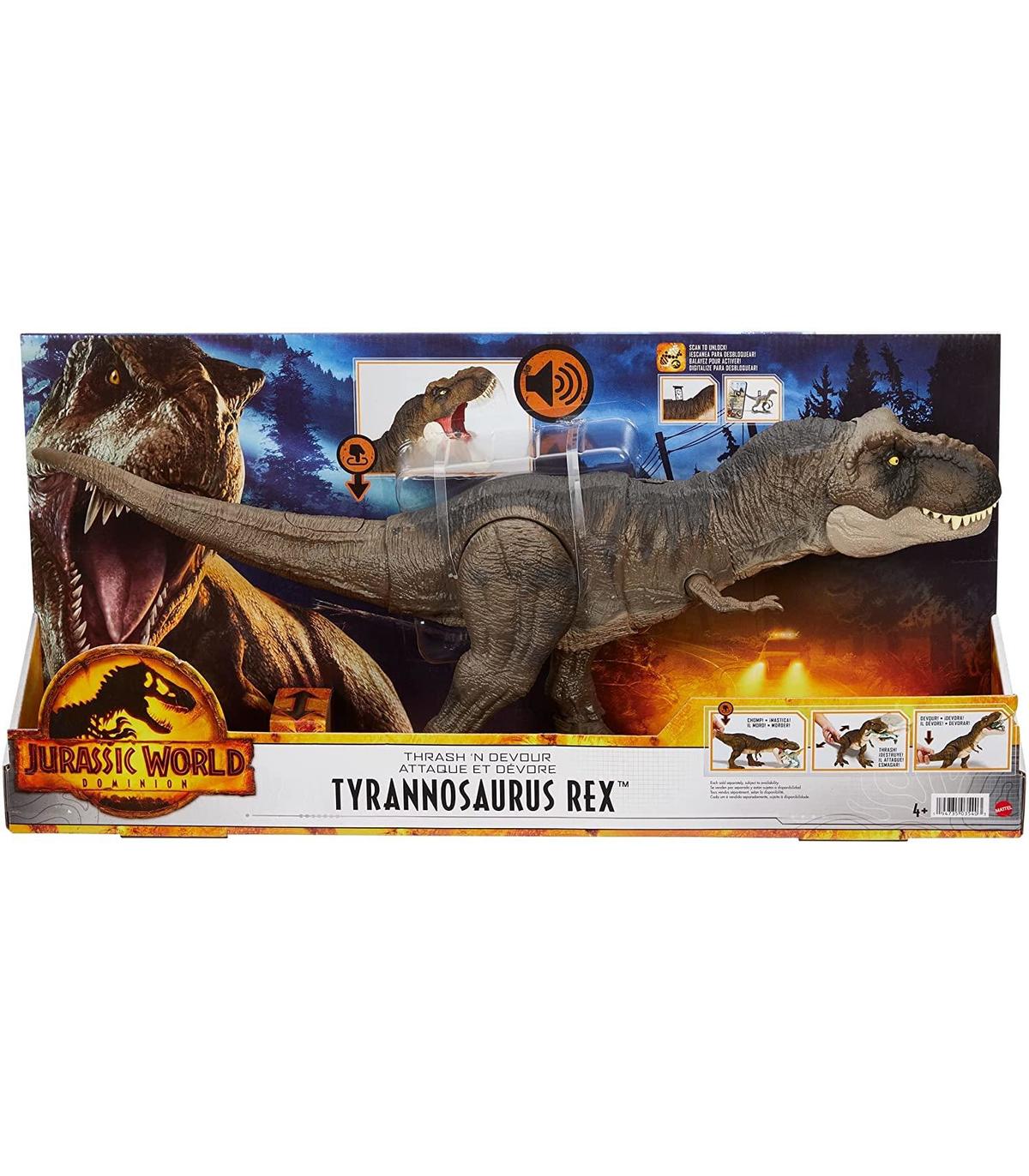 Jurassic World T-Rex Golpea y Devora Jw3 Dinosaurio Articulado Jurassic World T-Rex Golpea Y Devora Con Sonido. 54.78 Cm Largo Alto 21.59Cm