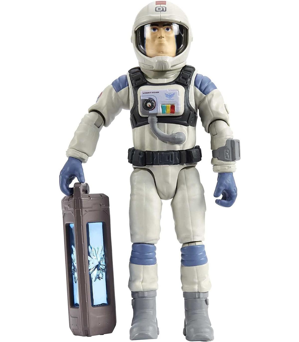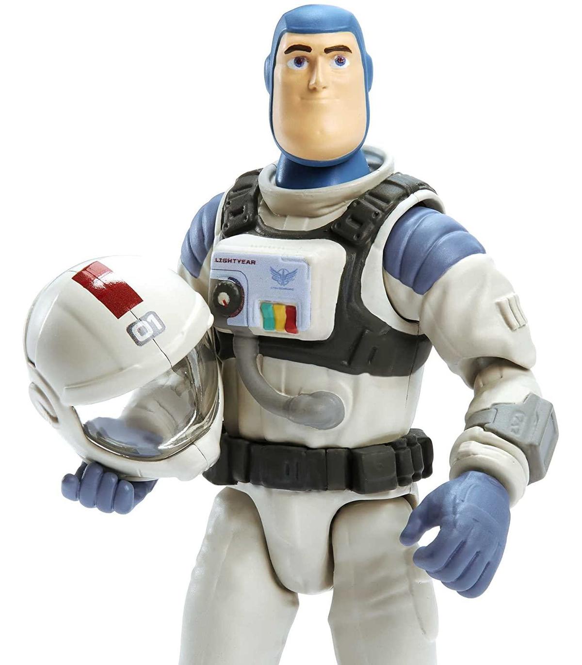 Revive la emoción de la exploración espacial, los conflictos y el trabajo en equipo de Lightyear de Disney Pixar con esta figura de Buzz en su traje de vuelo XL-01, acompañado de una célula de combustible que se engancha en su mano y un casco extraíble.