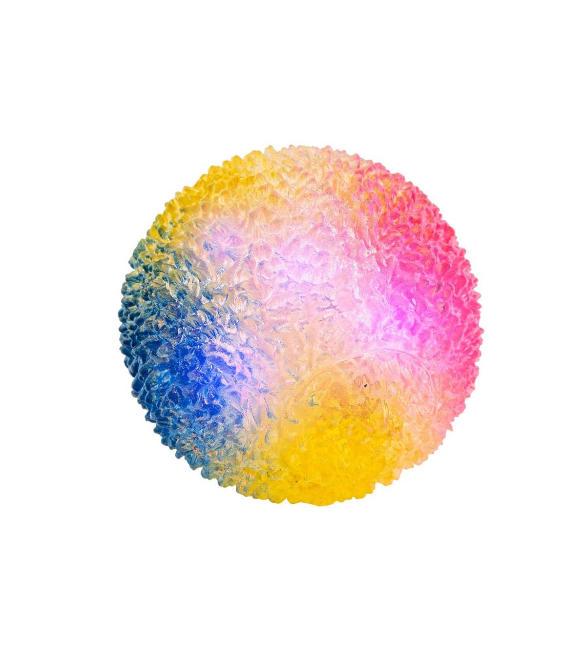 Esta pelota es muy divertida. Hace luces cada vez que rebota en la superficie. ¡Diviértete lanzándola! Mide 6,5 cm.