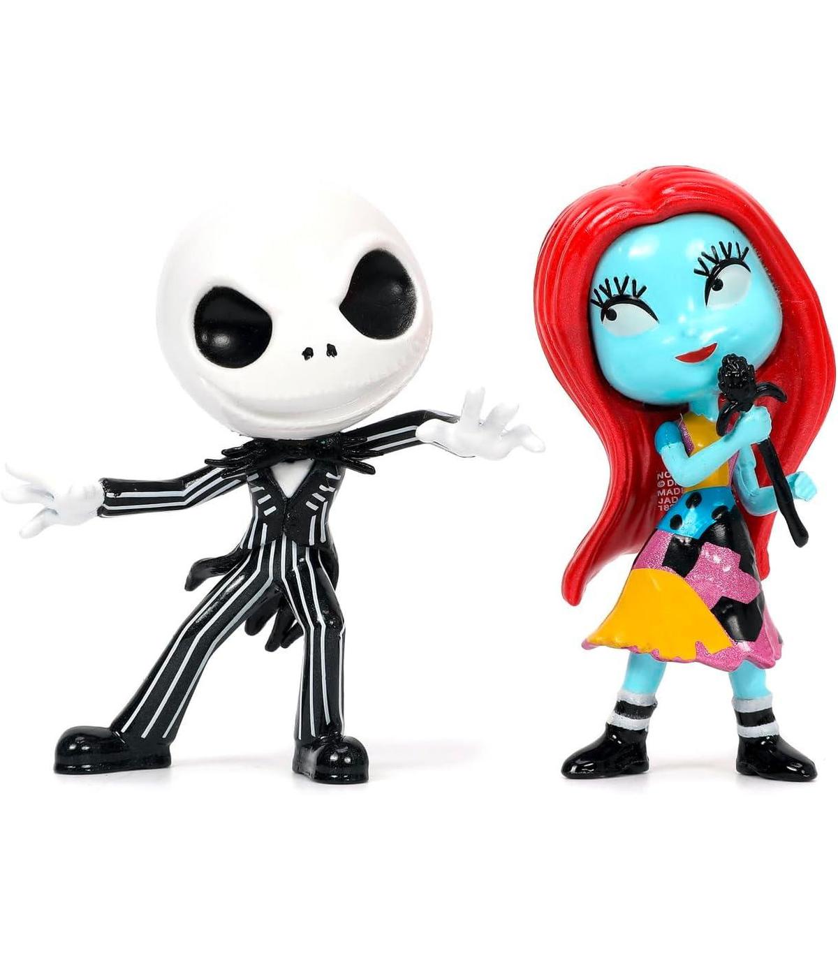 Set 4 Figuras Pesadilla Antes De Navidad Incluye figuras de metal de Sally, Jack Skellington, Zero y Pumpkin King.