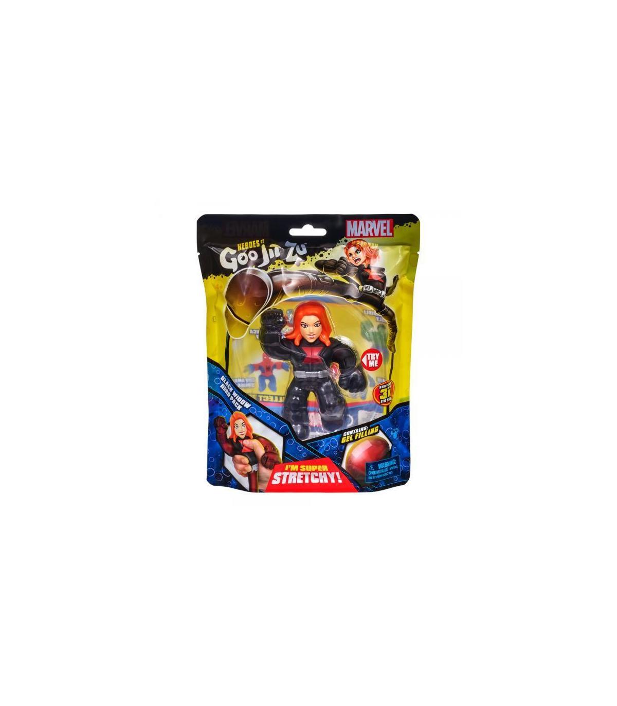Black Widow ¡Descubre las nuevas figuras de acción Marvel Goo Jit Zu! Se estiran y se estrujan hasta multiplicar por 3 su tamaño. Cada uno tiene unos poderes e interiores viscosos diferentes Colecciona las figuras Goo Jit Zu de los mejores SuperHéroes de todos los tiempos.