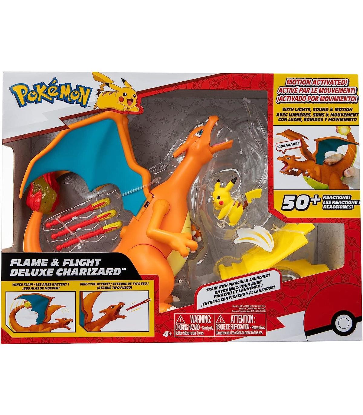 ¡Preparate para volar, rugir y mucho más con este fantástico set! Incluye 1 figura de Charizard, 1 figura Pikachu 5 cm. y un lanzador catapulta de Pikachu para poder lanzarlo y combatir contra Charizard.