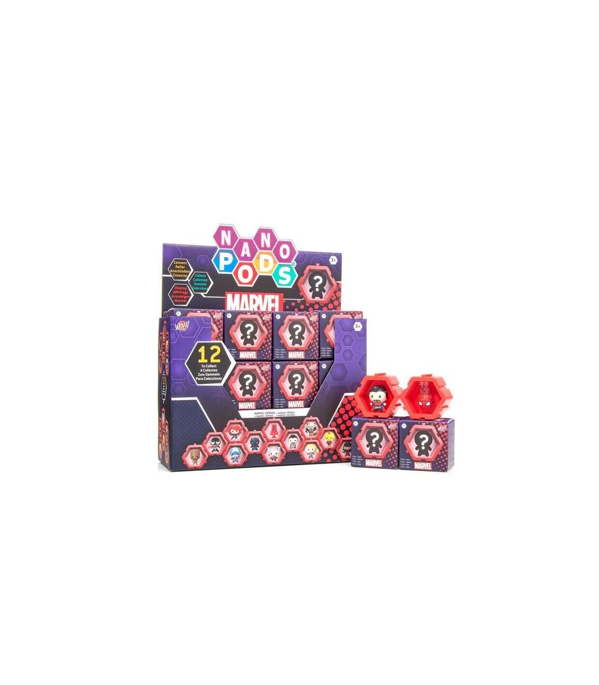 Wow Stuff Nano Pods Marvel Colecciona, conecta y exhibe, Consigue tu nano pops sorpresa, ¿Cual te tocara? Colecciona todas las figuras y conectalas de todas las maneras posibles para hacer las exhibiciones mas asombrosas ¡Brilla en la oscuridad!
