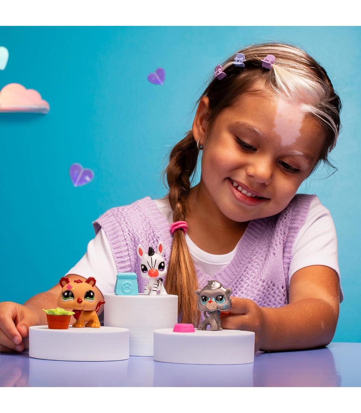 El Pack de 3 Mascotas Littlest Pet Shop de mascotas del zoológico es un conjunto que presenta tres encantadoras figuras de Littlest Pet Shop, cada una con un diseño único y exclusivo, acompañadas de un accesorio para una experiencia de juego aún más emocionante; no te pierdas la oportunidad de coleccionarlos todos