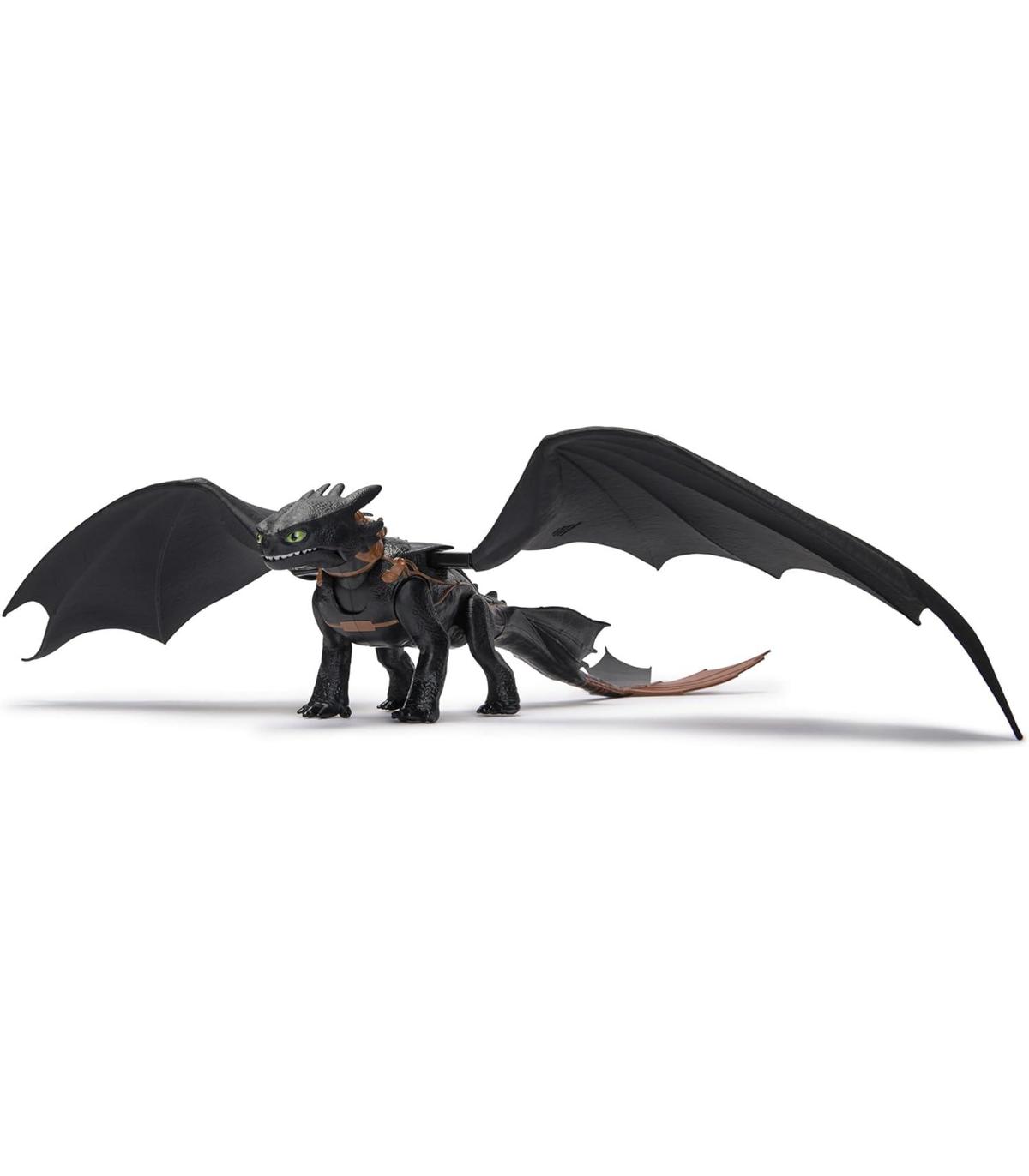 Dragon Toothless Electronico De Lujo JUGUETES CÓMO ENTRENAR A TU DRAGÓN: Inspira grandes aventuras con los personajes y dragones de la famosa saga. Prepárate para surcar los cielos, enfrentar desafíos y defender Isla Mema (Island of Berk) con juguetes que convierten cada juego en una misión legendaria ¡FIGURA DRAGÓN DESDENTADO CON ALAS DE 63 CM: Prepárate para ver a Desdentao como nunca antes: con una increíble envergadura de alas de 63 cm, esta figura articulada de Toothless Furia Nocturna luce una espectacular pose de acción inspirada en las pelis. Ideal para que los peques vivan aventuras legendarias con su dragón favorito LUCES, SONIDOS... ¡Y MORDISCOS Con solo pulsar un botón, activa el ataque de plasma del Furia Nocturna, acompañado de luces brillantes y feroces sonidos de mordisco. Una experiencia sensorial total para recrear las escenas más alucinantes o inventar nuevas batallas entre vikingos y dragones PROTEGE ISLA MEMA CON DESDENTADO: Únete a la misión de defender Isla Mema y mantener la paz junto a Desdentado. Con su ataque de plasma listo para la acción, este dragón juguete está preparado para enfrentarse a cualquier amenaza. ¡Los pequeños guardianes pueden sentirse como auténticos entrenadores de dragones INCLUYE: 1 dragon juguete Desdentado con luces y sonidos JUGUETES NIÑOS 4 AÑOS +: Los juguetes de Cómo Entrenar a tu Dragón están diseñados para ofrecer diversión segura y estimular la imaginación de los más pequeños. Con materiales resistentes y un diseño fiel a la saga, son perfectos para disfrutar en cualquier momento