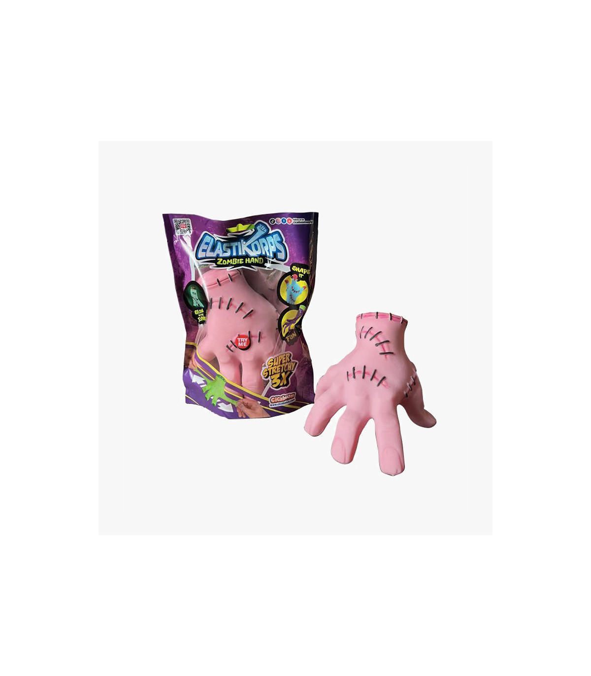 Cicaboom Mano Zombie Elastikorp Giga Size Modelos Surtidos. ¡Añade diversión espeluznante a la colección de juguetes con la Elastikorps Zombie Hand! Esta mano de zombie es ideal para los niños que buscan algo diferente y emocionante. Con una textura súper extensible que puede estirarse hasta 3 veces su tamaño original, esta mano de zombie es perfecta para horas de juego creativo. ¡Incluso brilla en la oscuridad! Ideal para agregar un toque espeluznante y sorprendente al juego. Haz que la imaginación cobre vida con la Zombie Hand de Elastikorps