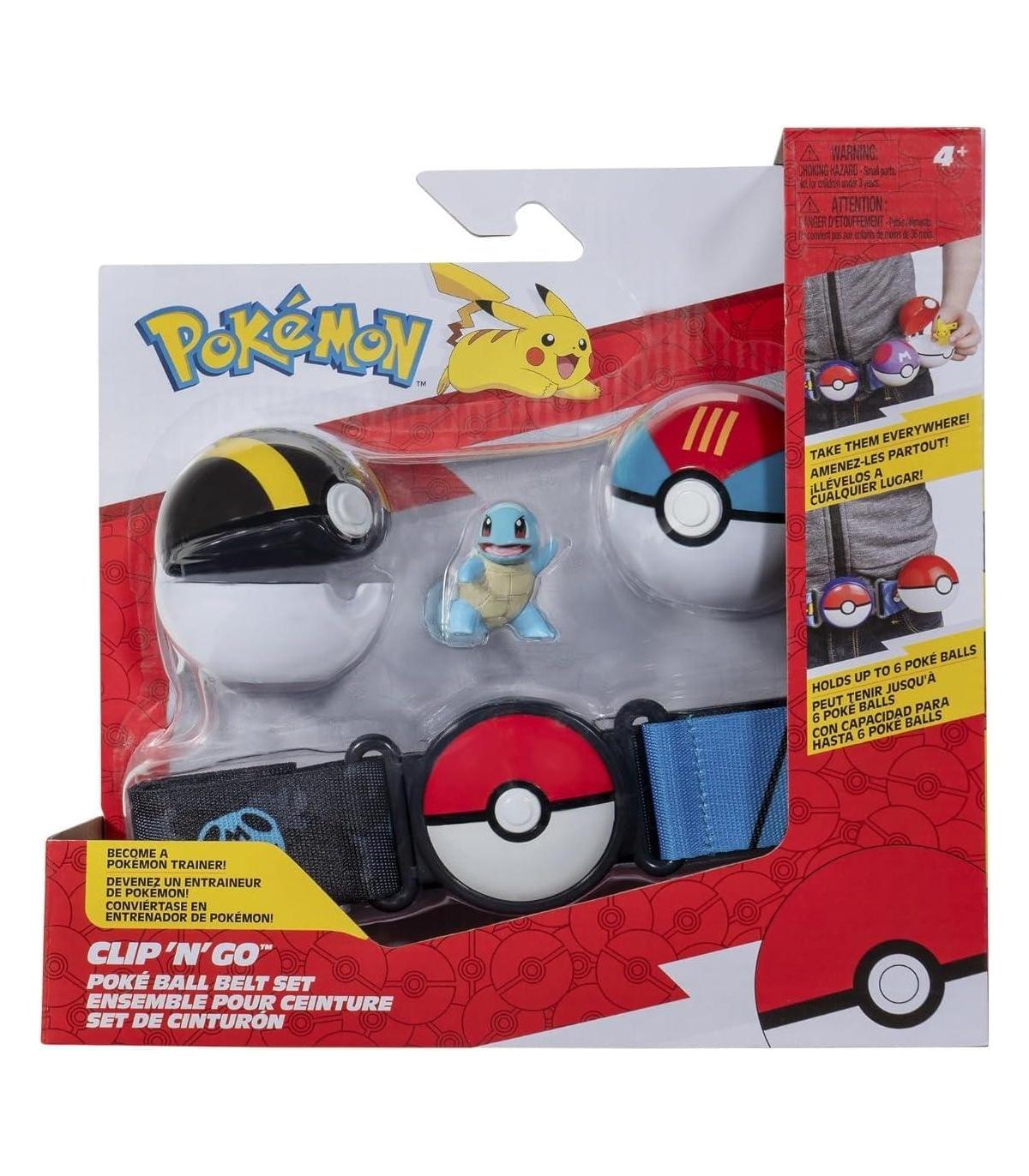 Clip n Go Poke Ball Belt Set Bolas de poké: el juego cuenta con una bola ultra y una bola de señuelo que se fija a un cinturón tipo agua. Pokémon icónico: incluye figura de batalla de Squirtle de 2 pulgadas que cabe dentro de cualquier Poké Ball. Producto oficial: Clip 'N' Go es un producto oficial de Pokémon de Jazwares.
