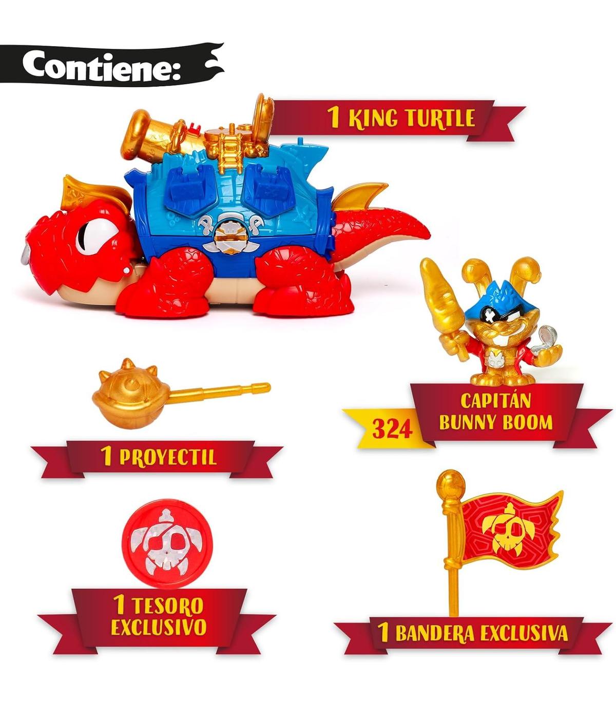 FIGURAS Y ACCESORIOS EXCLUSIVOS – Este King Turtle incluye 1 Piratix exclusivo, el Capitán Bunny Boom, junto con su tesoro exclusivo