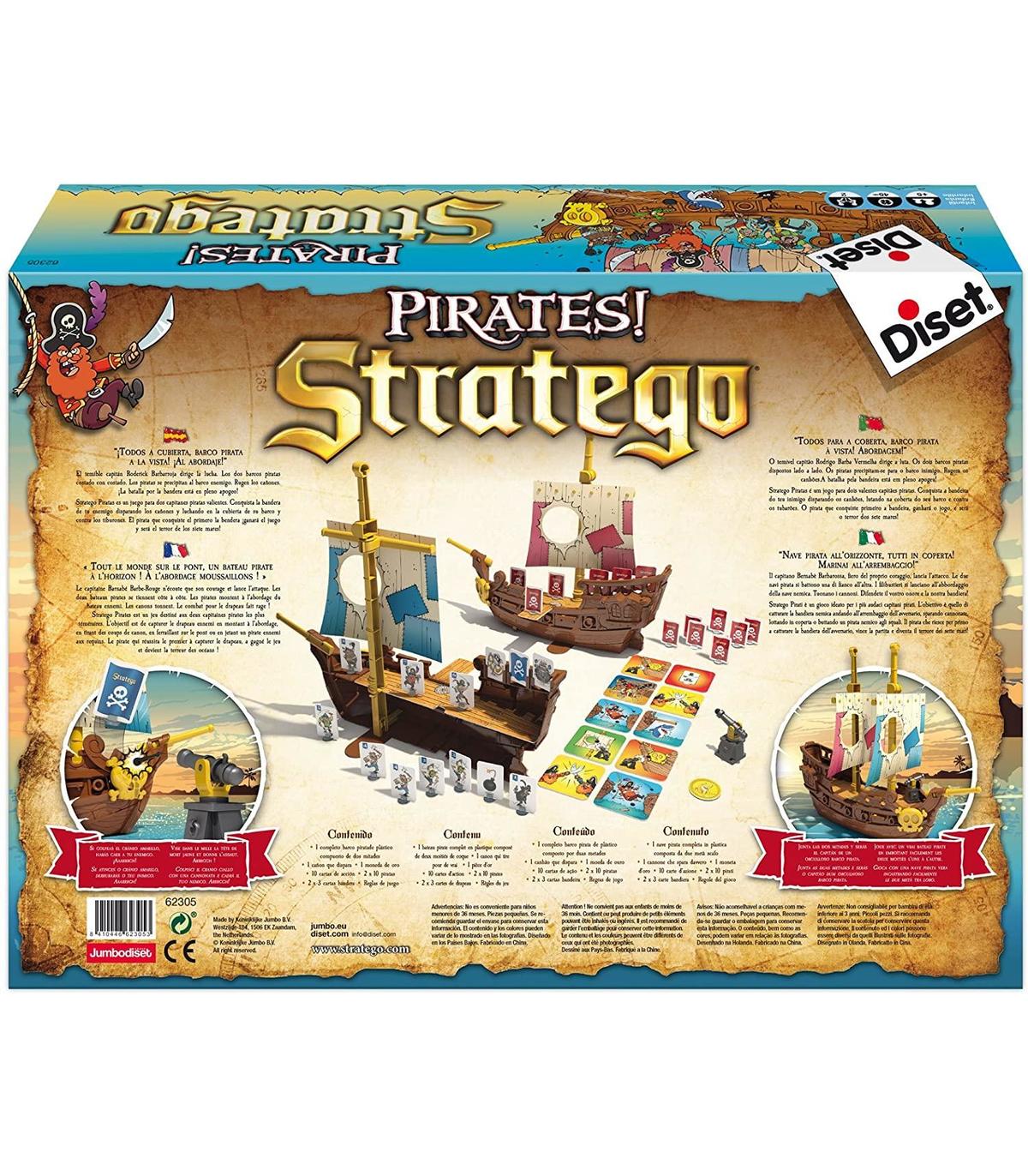 Juego infantil basado en el stratego, cuyo objetivo es abordar el barco pirata contrario con tu tripulacion para conseguir la bandera enemiga. Para conquistar la bandera debes dispara el cañón y luchar abordando el barco de tu enemigo. Una vez acabado el juego se pueden juntar las dos partes del barco para guardar las fichas dentro del barco y para jugar con el.
