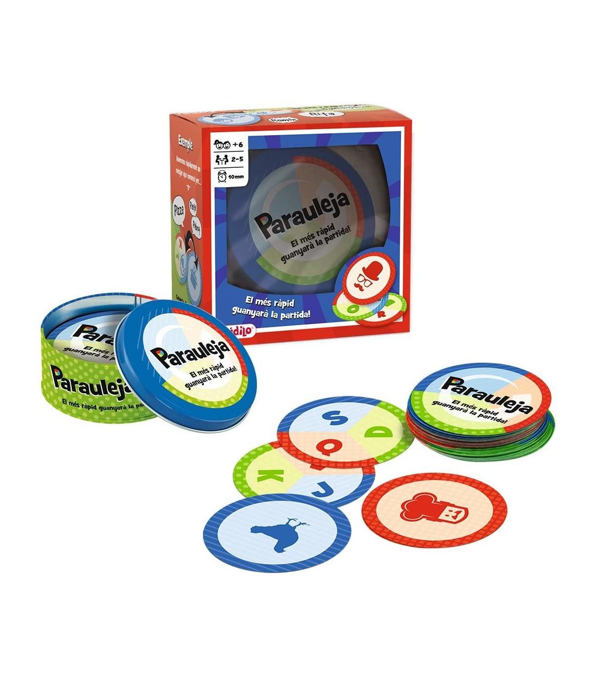 Parauleja (Edicion Catalan) Ludilo Divertit joc de cartes de doble cara; en una cara es representen les 10 categories del joc (animal, ciutat, país, sèrie de tv, objecte, nom propi, planta o arbre, professió, menjar, personatge famós) i en l'altra cara es mostren 3 lletres de diferent color; el més ràpid en endevinar una combinació guanya Ràpid i dinàmic, converteix-te en un super palabrero Joc educatiu fàcil de transportar, emporta-te'l a qualsevol lloc gràcies a la seva reduïda grandària; al tren, en un avió, a la platja oa la piscina. Treu-lo i posa't a endevinar paraules De 2 a 5 jugadors, recomanable per a nens de més de 6 anys Juga en família i ensenya paraules noves als teus fills