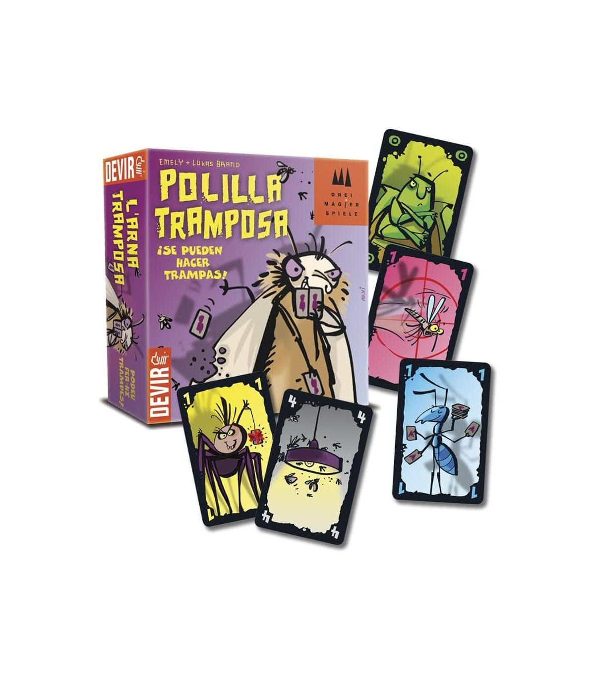 Polilla Tramposa Temática: juegos de cartas El juego consiste en quedarse sin cartas, para ello iremos echando una carta con un número inmediatamente superior o inferior a la que hay en la mesa Edad mínima recomendada: 84 meses Ganador del prestigioso deutscher spiele preis best children's game" 2012 Para ganar has de hacer trampas Ganador del prestigioso “Deutscher Spiele preis Best Children's Game” 2012 Para ganar has de hacer trampas Duración aproximada de la partida 15-25 min