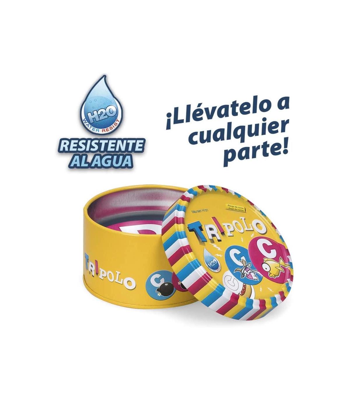 JUEGO VIAJE: Fácil de transportar gracias a su estuche metálico, te lo puedes llevar de viaje, en el tren o jugar en la playa. Sus cartas son resistentes al agua